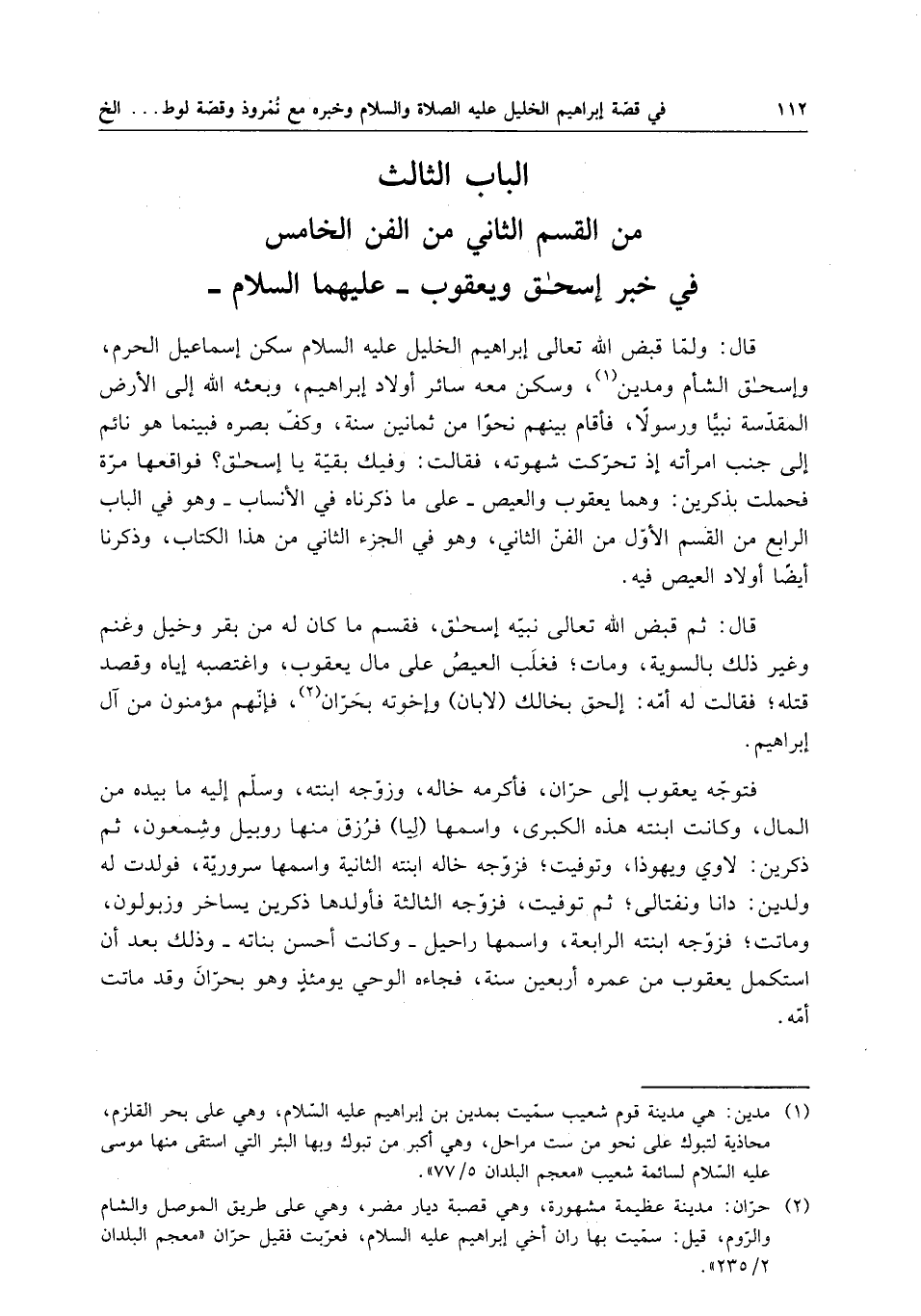 الباب الثالث من القسم الثاني من الفن الخامس في خبر إسحاق ويعقوب - عليهما السلام -