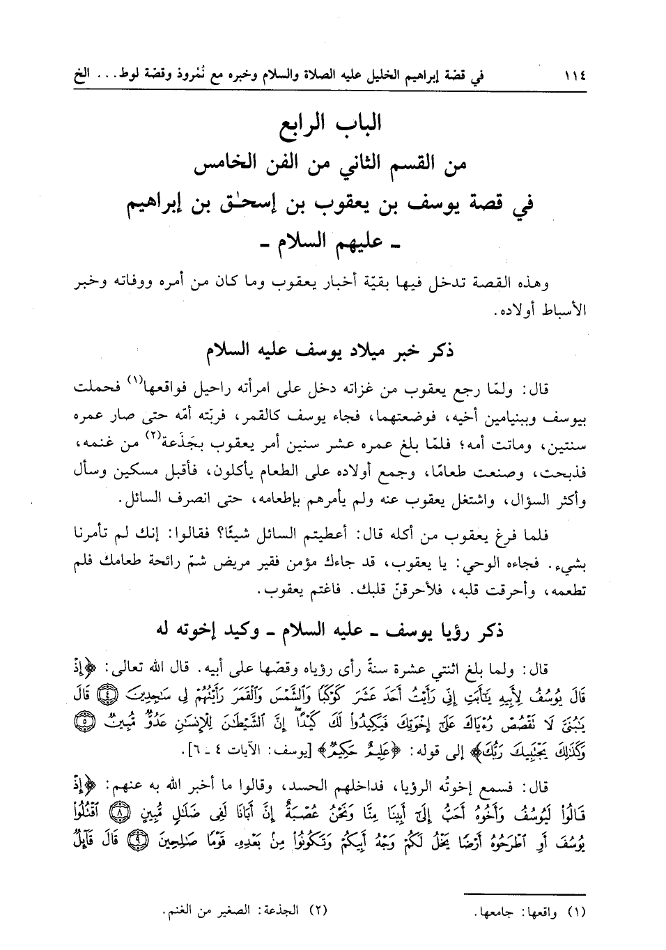 الباب الرابع من القسم الثاني من الفن الخامس في قصة يوسف بن يعقوب بن إسحاق بن إبراهيم عليهم السلام