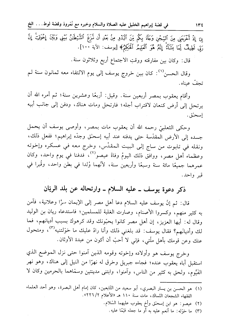 ذكر دعوة يوسف - عليه السلام - وارتحاله عن بلد الريان