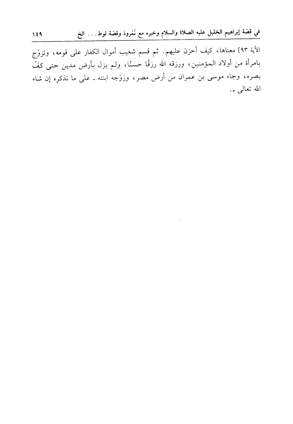 معناها ، كيف أحزن علهم . ثم قسم شعيب أموال الكفار على قومه ، وتزوج بامرأة من أولاد المؤمنين ، ورزقه الله رزقاً حسناً ، ولم يزل بأرض مدين حتى كف بصره ، وجاء موسى بن عمران من أرض مصر ، وزوجه ابنته - على ما نذكره إن شاء الله تعالى - .