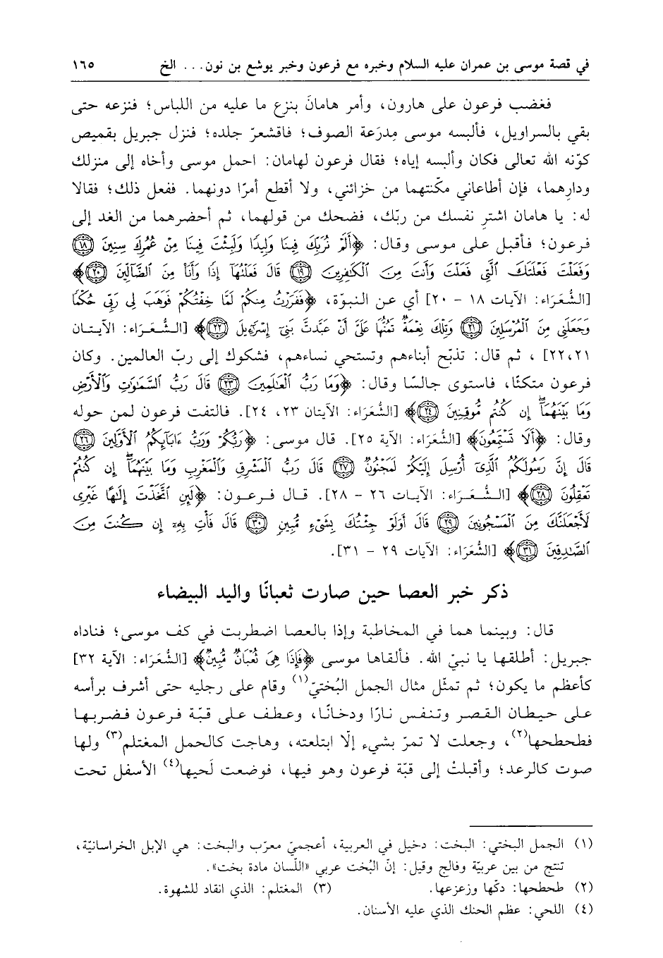 ذكر خبر العصا حين صارت ثعبانا واليد البيضاء