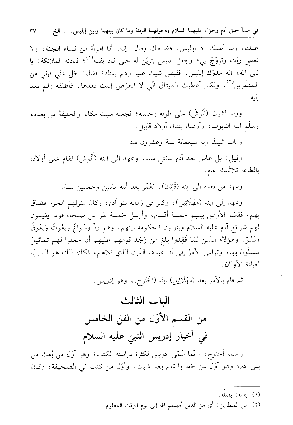 الباب الثالث من القسم الأول من الفن الخامس في أخبار إدريس عليه السلام