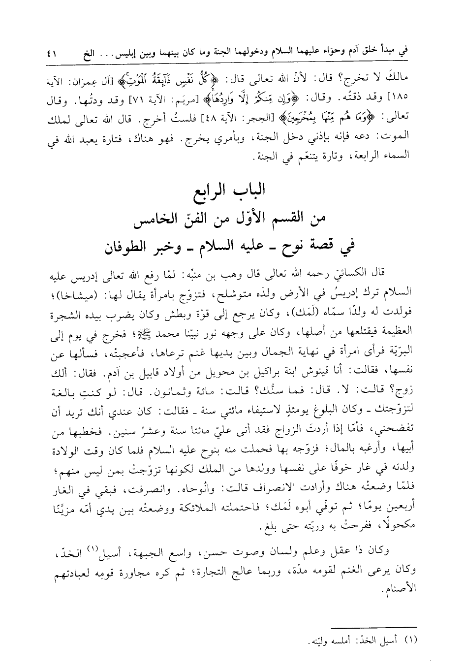 الباب الرابع من القسم الأول من الفن الخامس في قصة نوح - عليه السلام - وخبر الطوفان