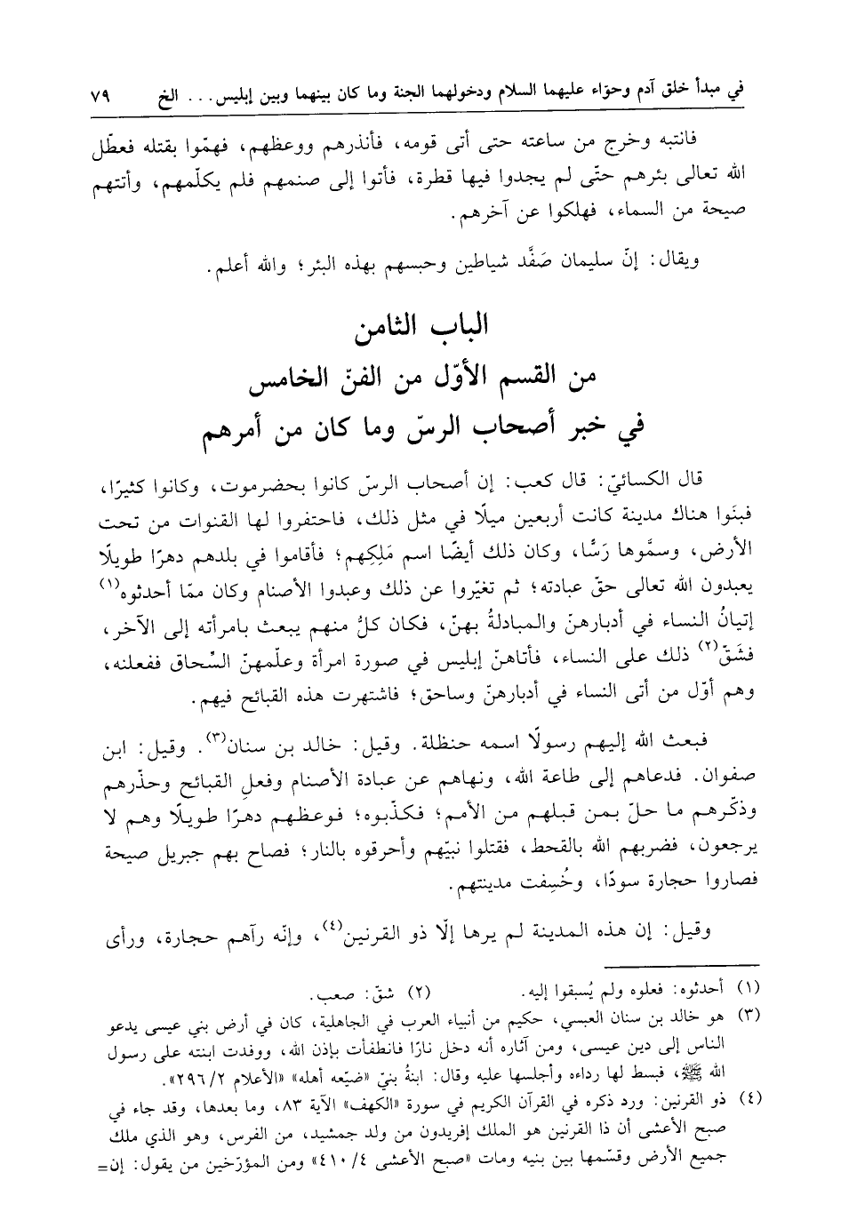 الباب الثامن من القسم الأول من الفن الخامس في خبر أصحاب الرس وما كان من أمرهم