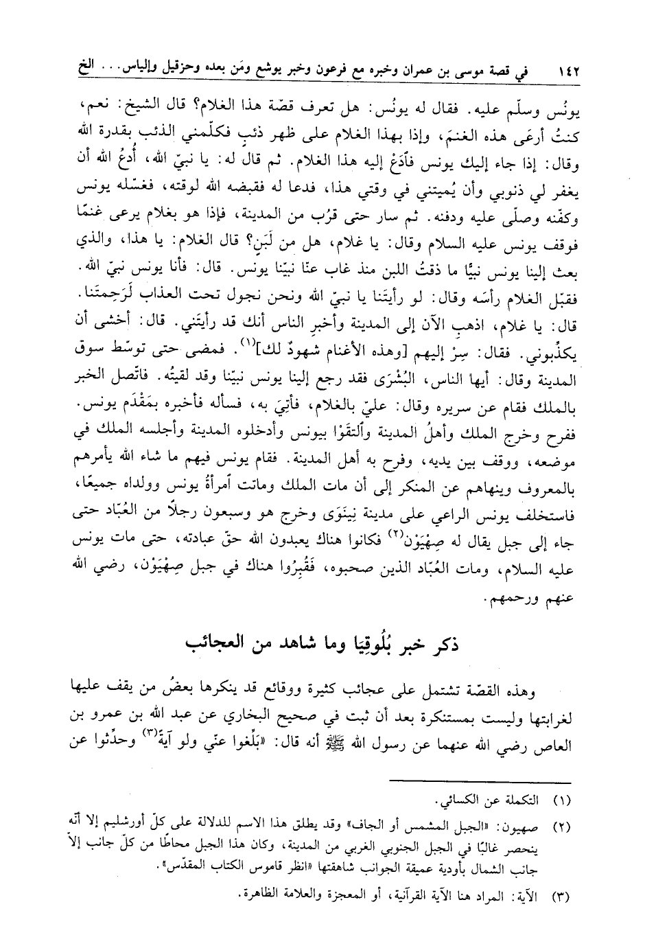 وهذه القصة تشتمل على عجائب كثيرة ووقائع قد ينكرها بعض من يقف عليها لغرابتها وليست بمستنكرة بعد أن ثبت في صحيح البخاري عن عبد الله بن عمرو بن العاصي رضي الله عنهما عن رسول الله ( صلى الله عليه وسلم ) أنه قال : " بلغوا عني ولو آية وحدثوا عن