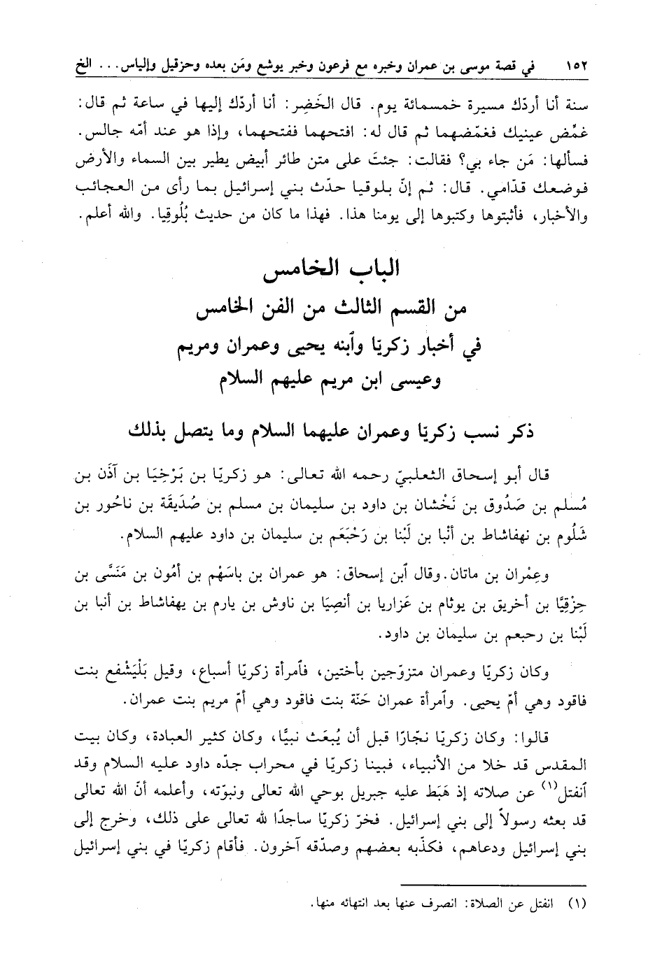 الباب الخامس من القسم الثالث من الفن الخامس في أخبار زكريا وابنه يحيى وعمران ومريم وعيسى بن مريم عليهم السلام
