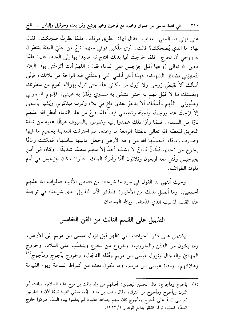 يشتمل على ذكر الحوادث التي تظهر قبل نزول عيسى بن مريم إلى الأرض ، وما يكون من الفتن والحروب ، وخروج من يخرج ويتغلب على البلاد ، وخروج المهدي والدجال ونزول عيسى بن مريم وقتله الدجال ، وخروج يأجوج ومأجوج وهلاكهم ، ووفاة عيسى بن مريم ، وما يكون بعده من أشراط الساعة ويوم القيامة