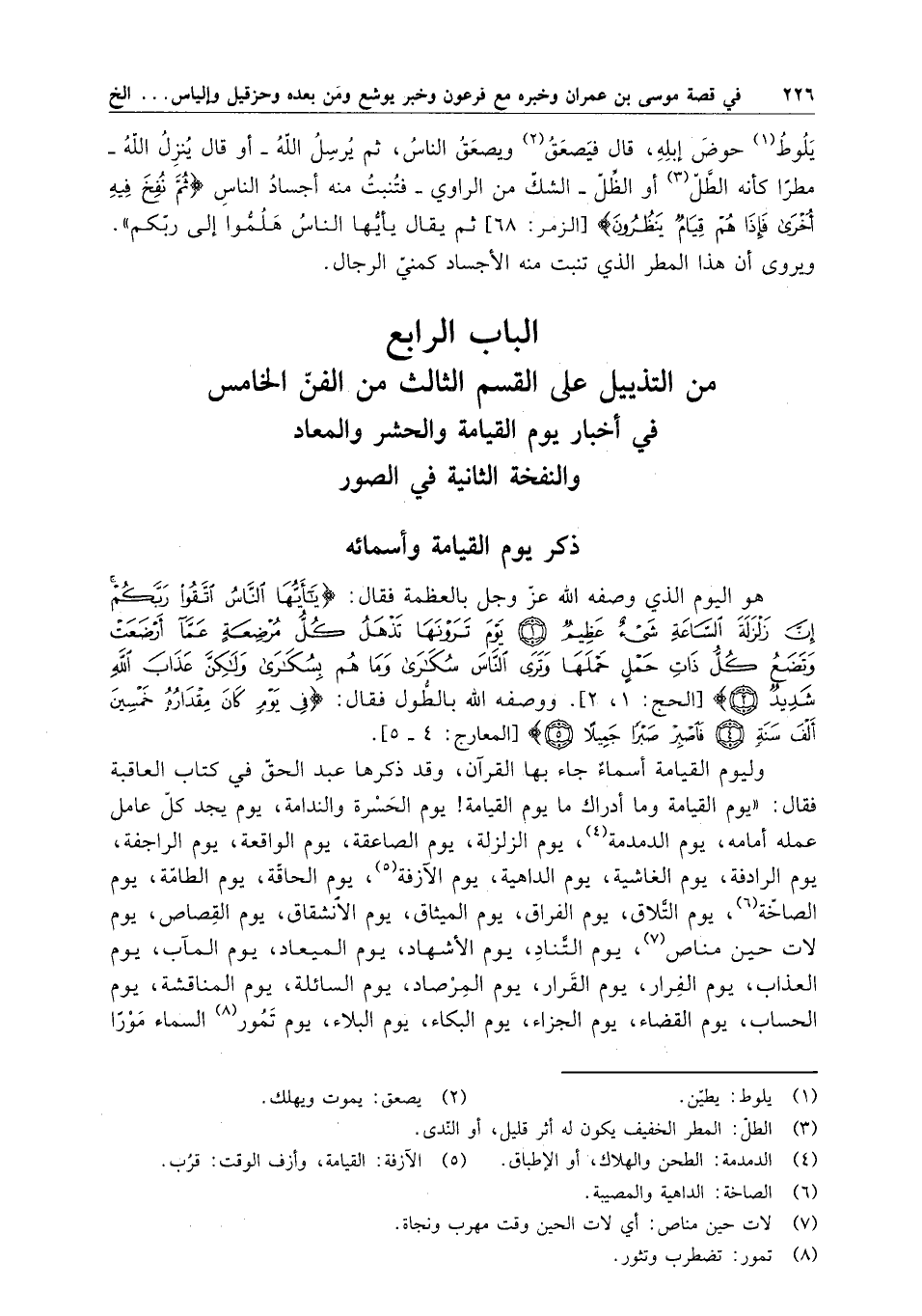 الباب الرابع من التذييل على القسم الثالث من الفن الخامس في أخبار يوم القيامة والحشر والمعاد والنفخة الثانية في الصور