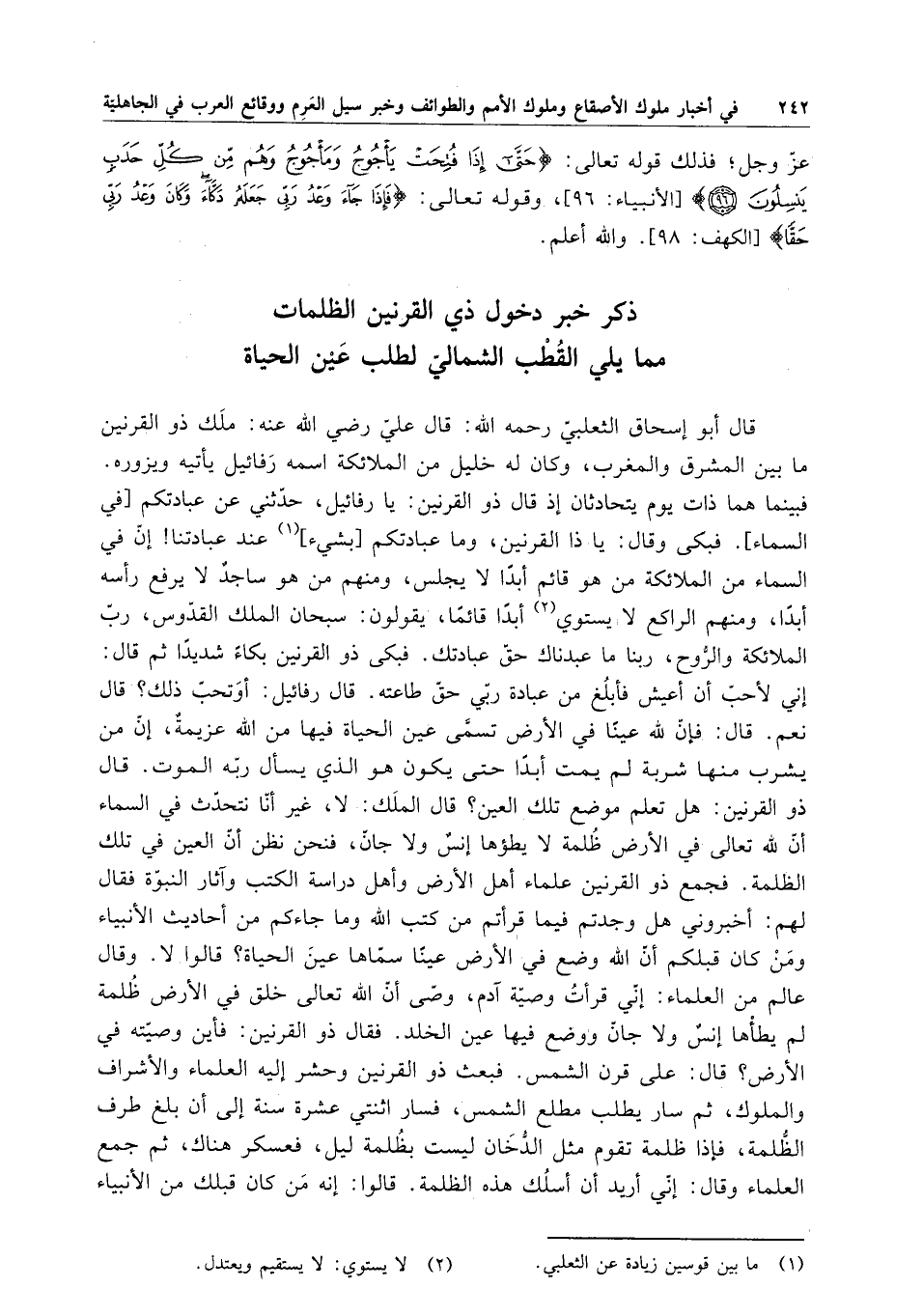 ذكر خبر دخول ذي القرنين الظلمات مما يلي القطب الشمالي لطلب عين الحياة