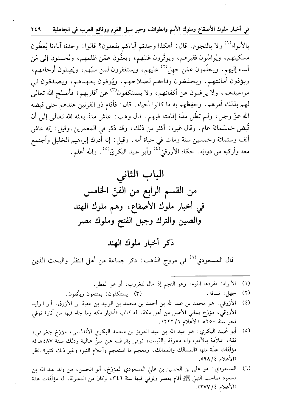 قال المسعودي في مروج الذهب : ذكر جماعة من أهل النظر والبحث الذين