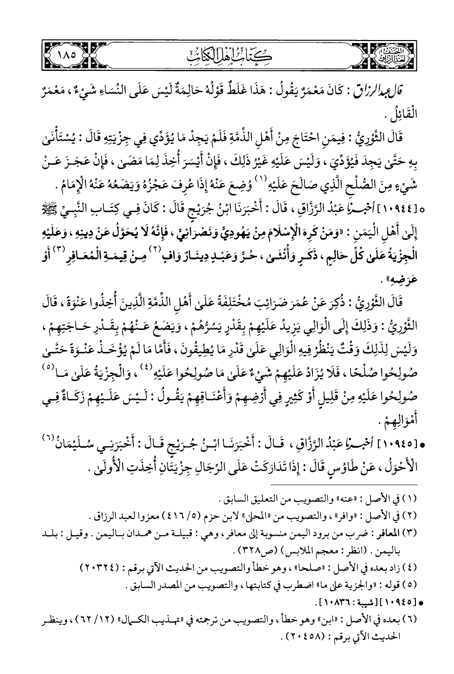 كتاب مصنف عبد الرزاق - ط التأصيل الثانية (اسم الجزء: 6)