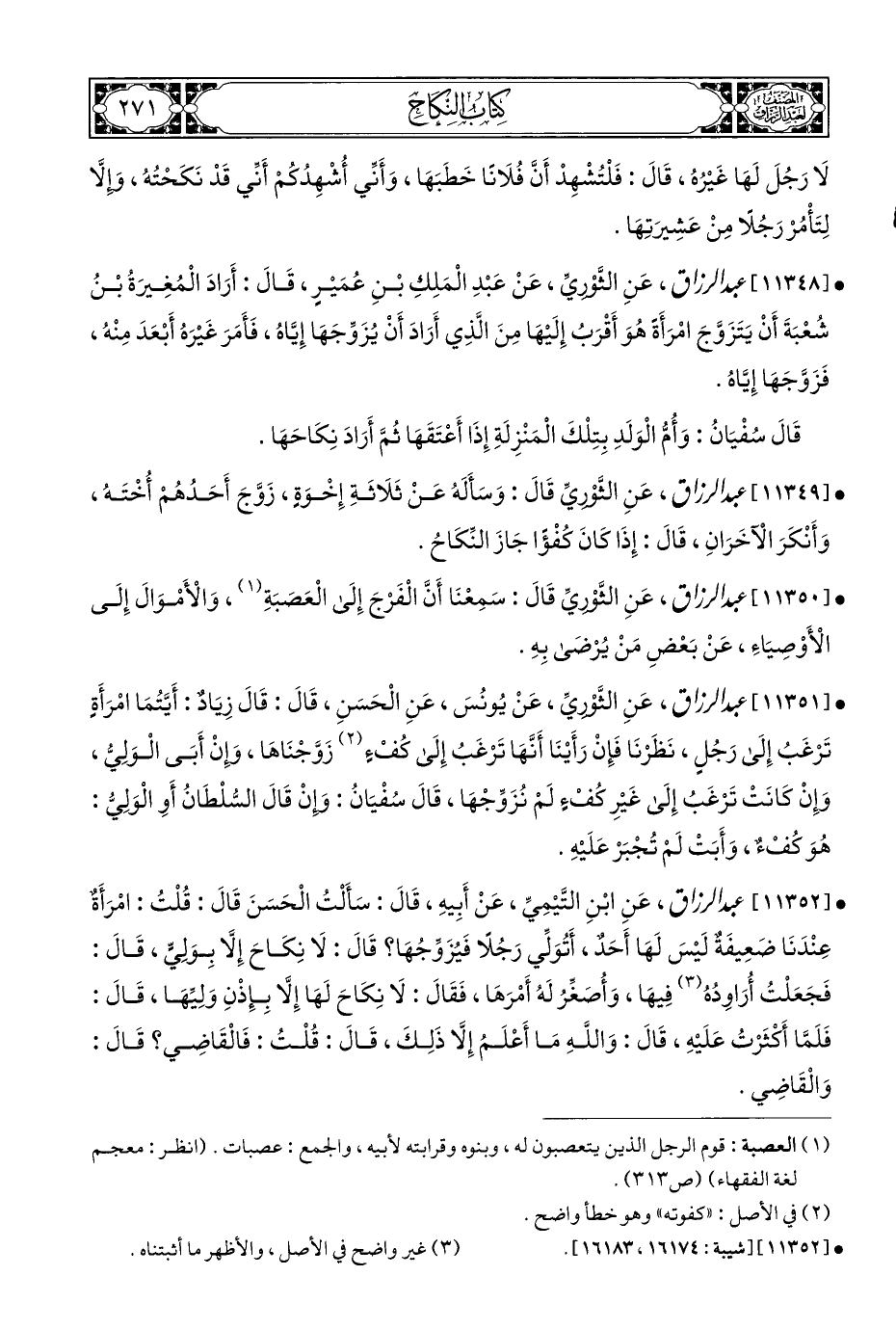 • [١١٣٥٠] عبد الرزاق، عَنِ الثَّوْرِيِّ قَالَ: سَمِعْنَا أَنَّ الْفَرْجَ إِلَى الْعَصَبَةِ (¬١)، وَالْأَمْوَالَ إِلَى الْأَوْصِيَاءِ، عَنْ بَعْضِ مَنْ يُرْضَى بِهِ.
