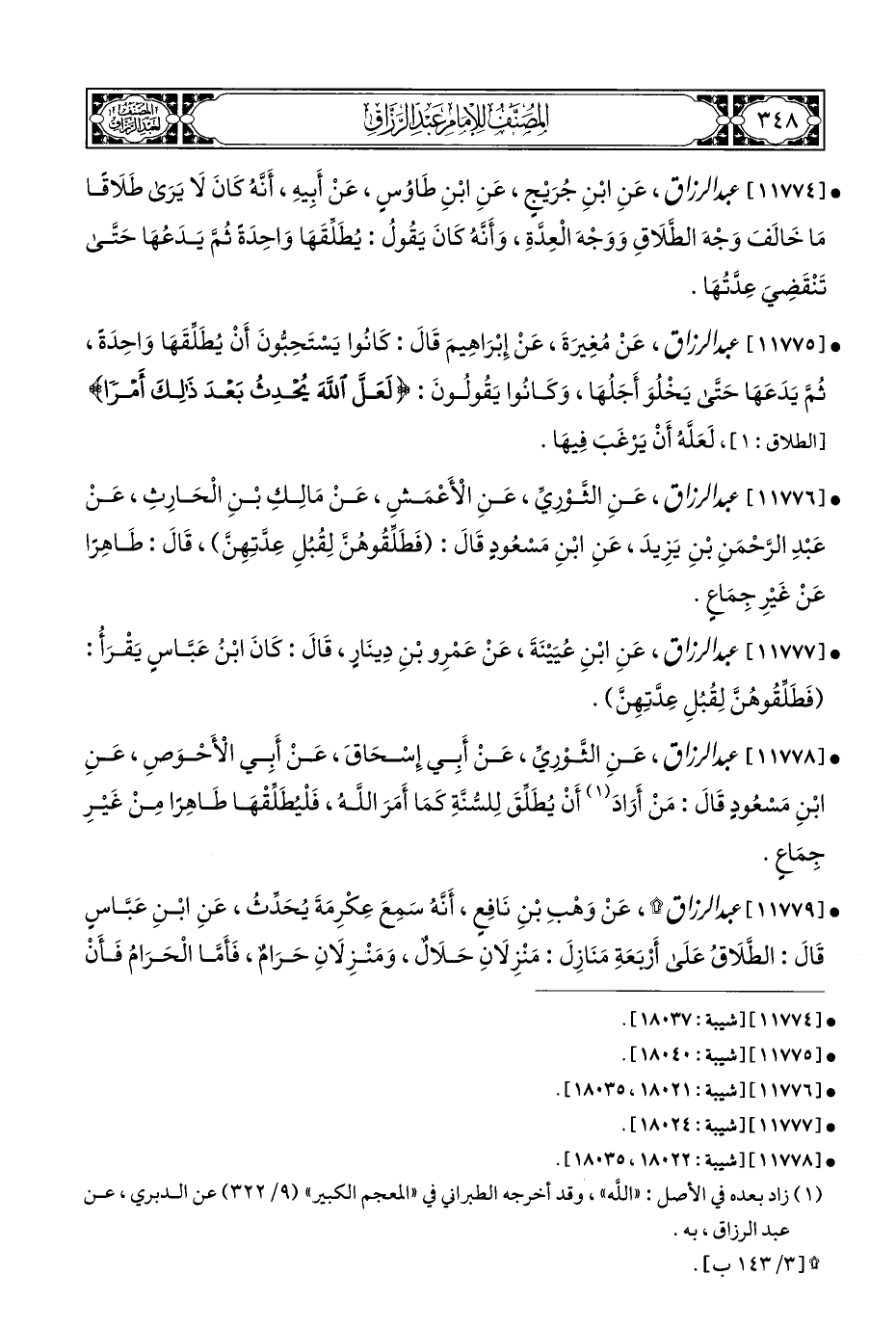 كتاب مصنف عبد الرزاق - ط التأصيل الثانية (اسم الجزء: 6)
