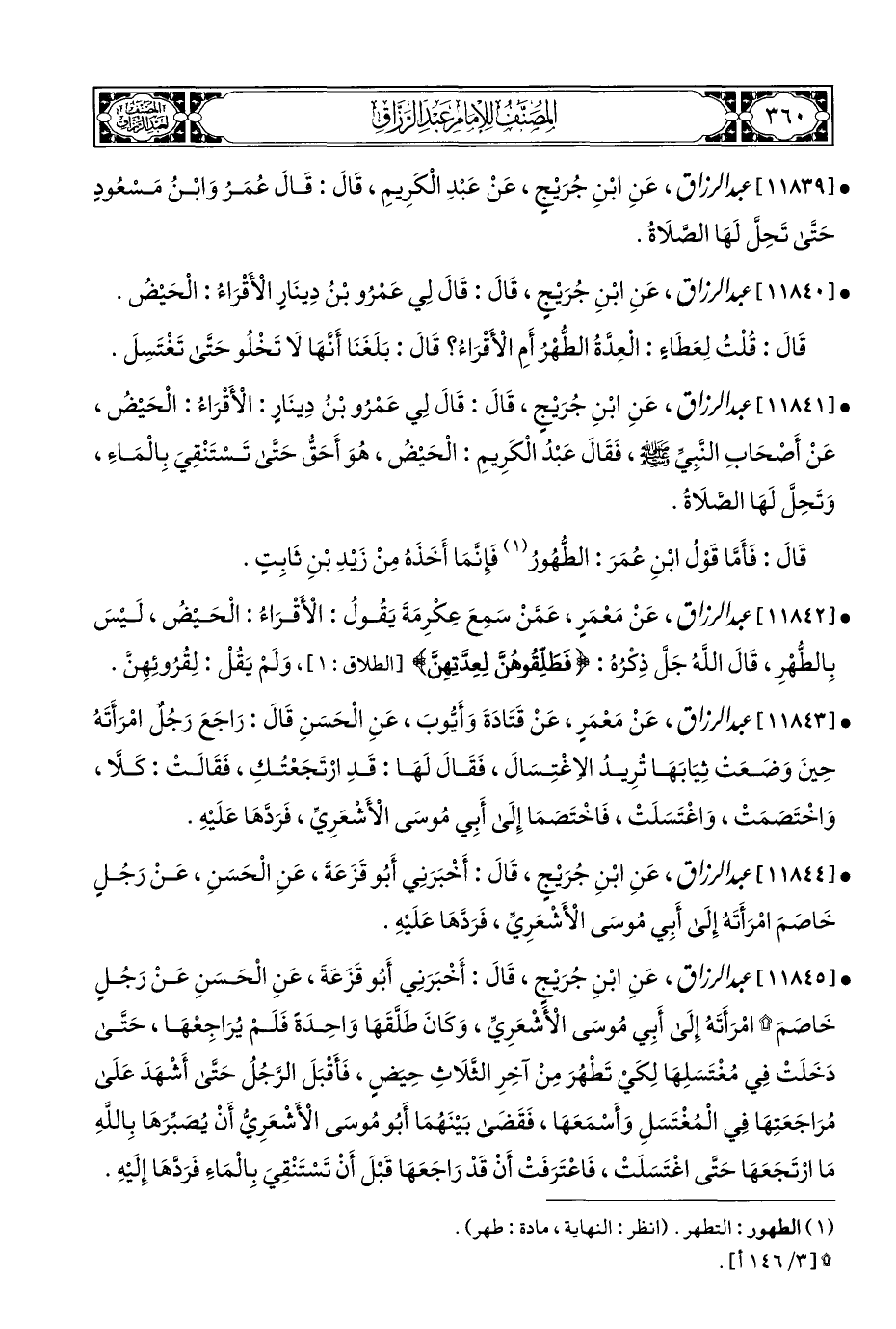 • [١١٨٣٩] عبد الرزاق، عَنِ ابْنِ جُرَيْجٍ، عَنْ عَبْدِ الْكَرِيمِ، قَالَ: قَالَ عُمَرُ وَابْنُ مَسْعُودٍ حَتَّى تَحِلَّ لَهَا الصلَاةُ.
