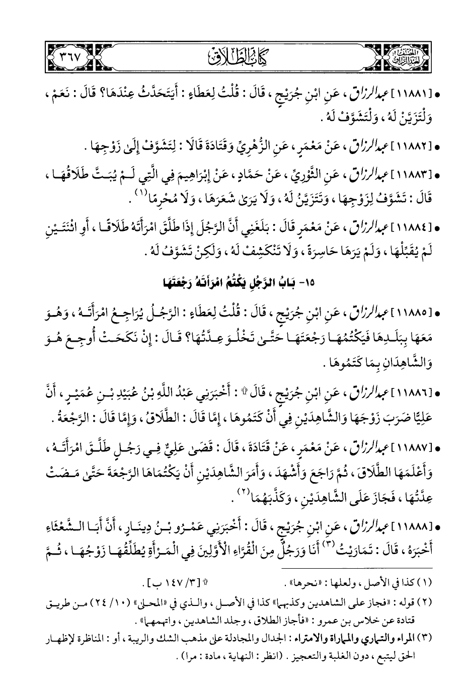 • [١١٨٨٨] عبد الرزاق، عَنِ ابْنِ جُرَيْجٍ، قَالَ: أَخْبَرَنِي عَمْرُو بْنُ دِينَارٍ، أَنَّ أَبَا الشَّعْثَاءِ أَخْبَرَهُ، قَالَ: تَمَارَيْتُ (¬٣) أَنَا وَرَجُلٌ مِنَ الْقُرَّاءِ الْأَوَّلِينَ فِي الْمَرْأَةِ يُطَلِّقُهَا زَوْجُهَا، ثُمَّ