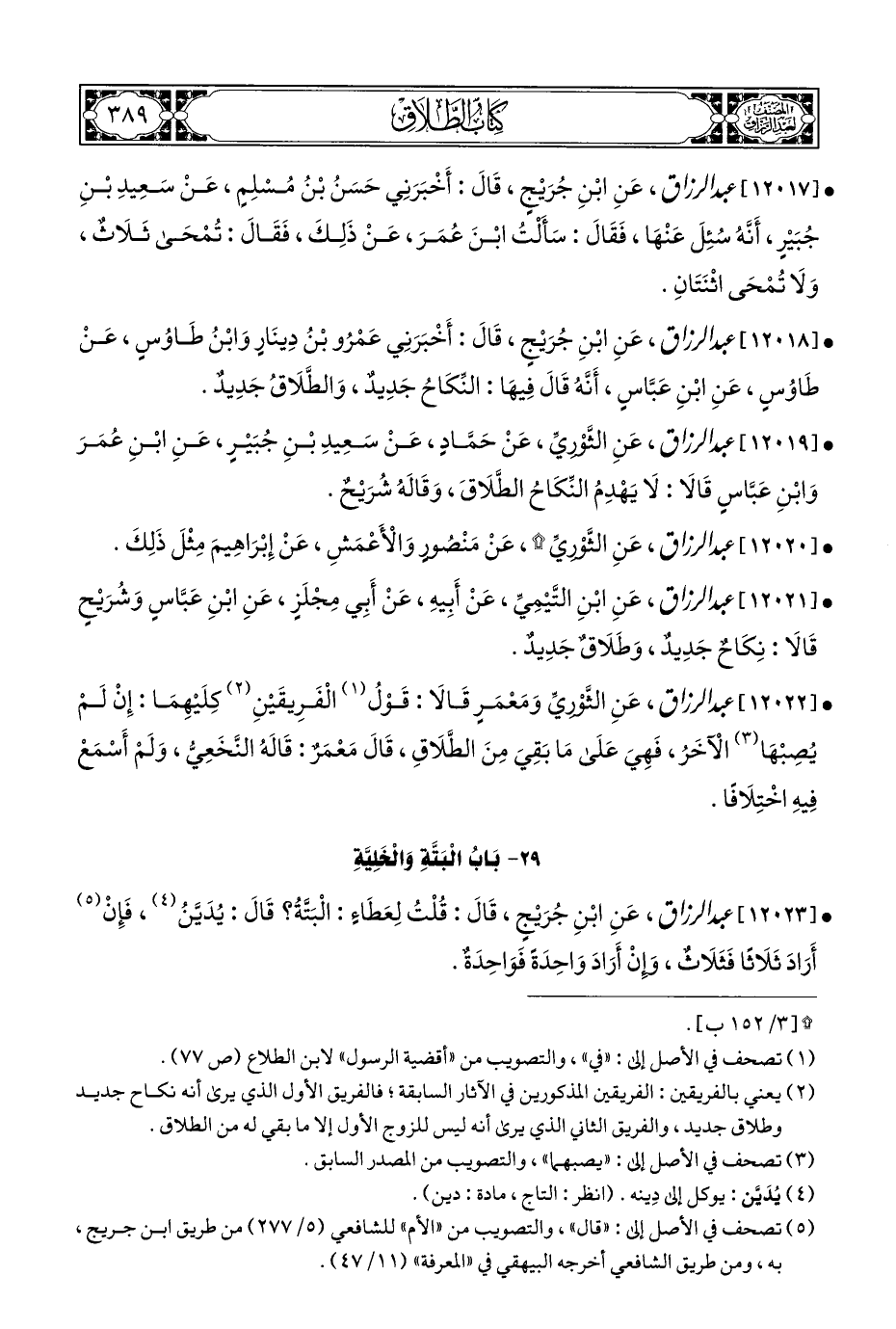 • [١٢٠٢٣] عبد الرزاق عَنِ ابْنِ جُرَيْجٍ، قَالَ: قُلْتُ لِعَطَاءٍ: الْبَتَّةُ؟ قَالَ: يُدَيَّنُ (¬٤) , فَإِنْ (¬٥) أَرَادَ ثَلَاثًا فَثَلَاثٌ، وإِنْ أَرَادَ وَاحِدَةً فَوَاحِدَةٌ.