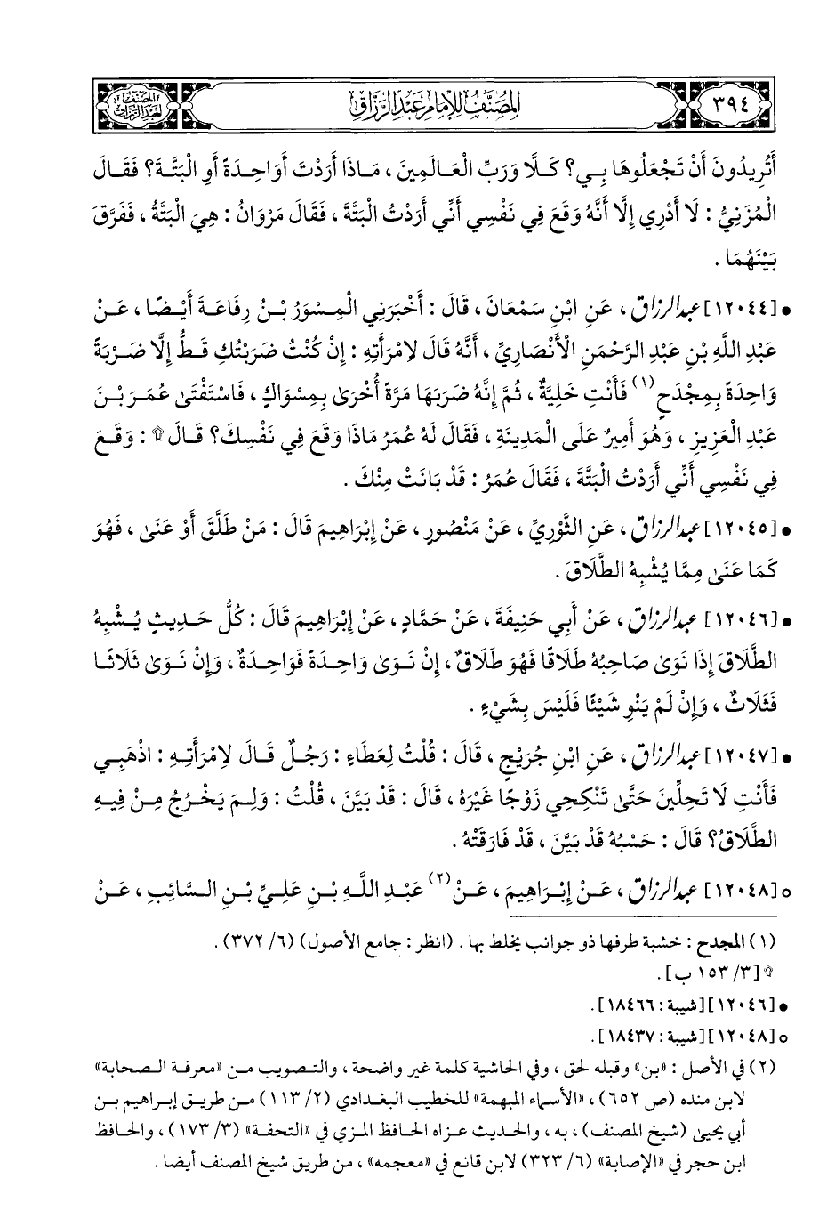 كتاب مصنف عبد الرزاق - ط التأصيل الثانية (اسم الجزء: 6)