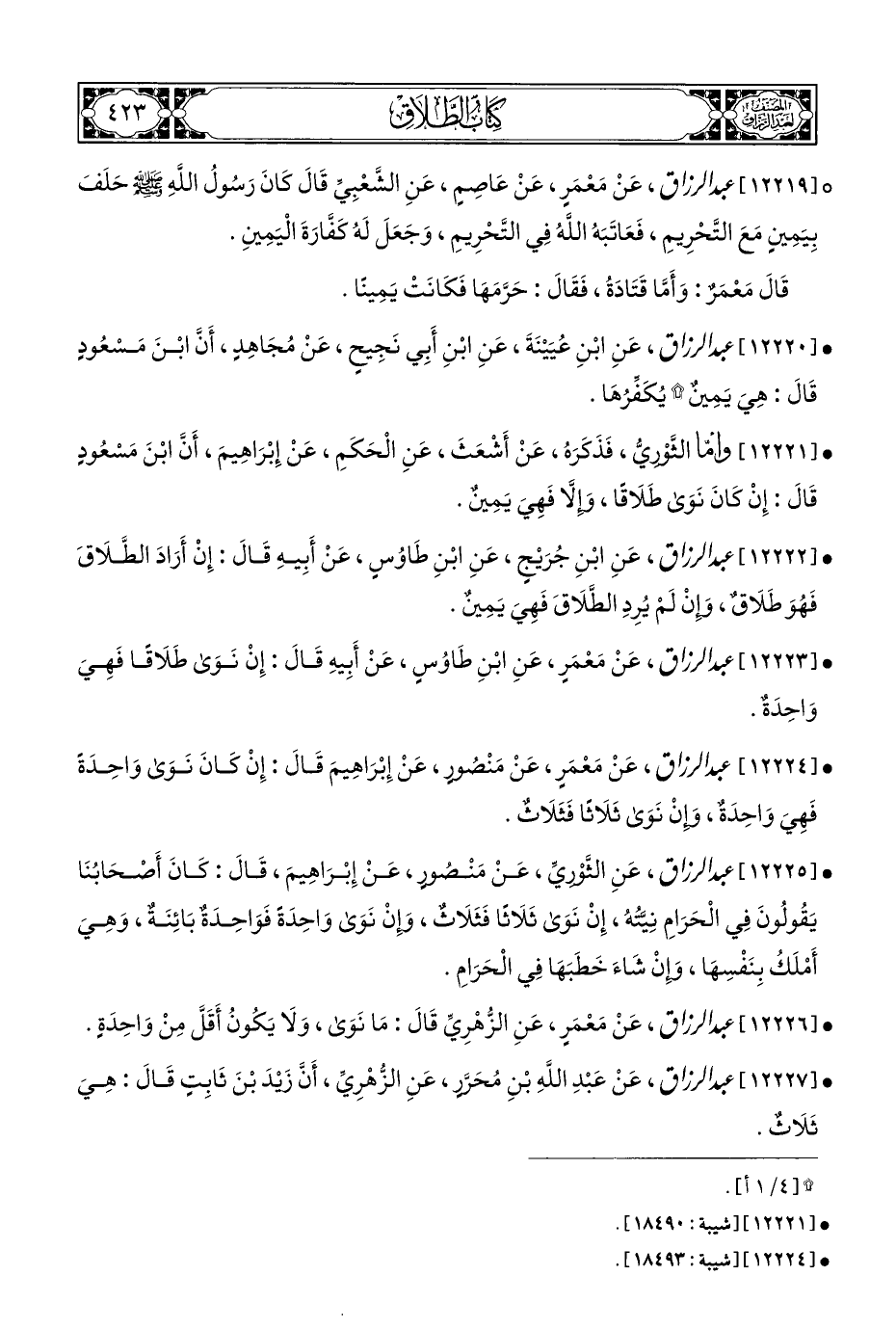 • [١٢٢٢٣] عبد الرزاق، عَنْ مَعْمَرٍ، عَنِ ابْنِ طَاوُسٍ، عَنْ أَبِيهِ قَالَ: إِنْ نَوَى طَلَاقًا فَهِيَ وَاحِدَةٌ.