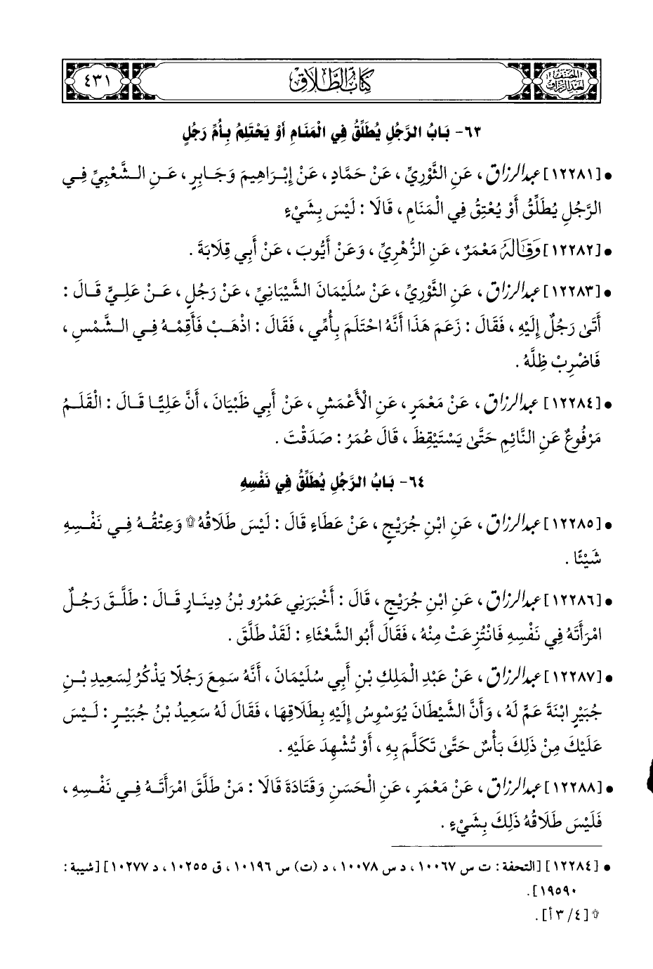 كتاب مصنف عبد الرزاق - ط التأصيل الثانية (اسم الجزء: 6)