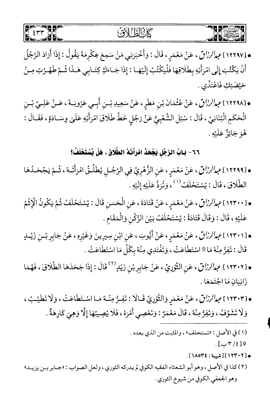 كتاب مصنف عبد الرزاق - ط التأصيل الثانية (اسم الجزء: 6)