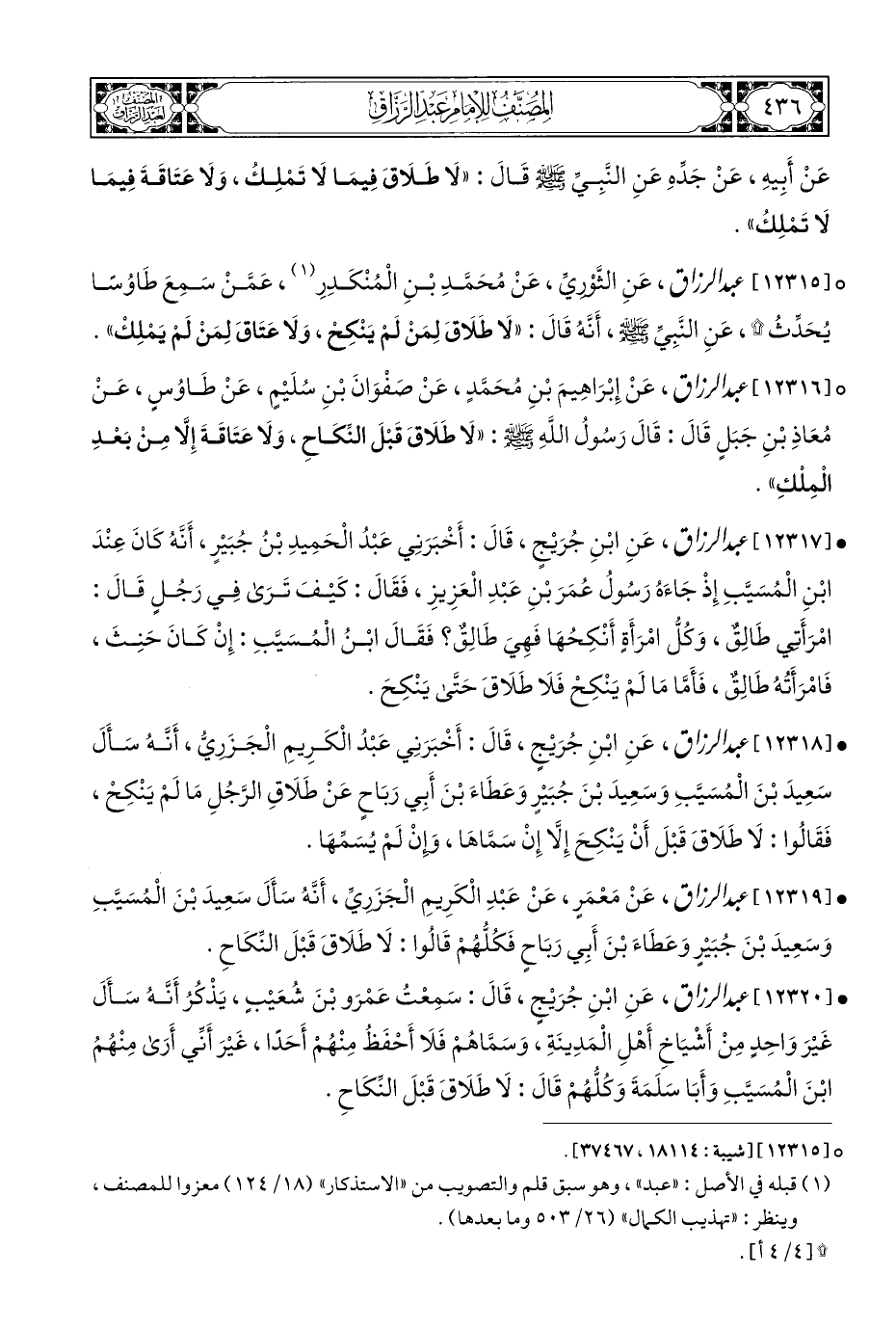 ° [١٢٣١٥] [شيبة: ١٨١١٤، ٣٧٤٦٧].