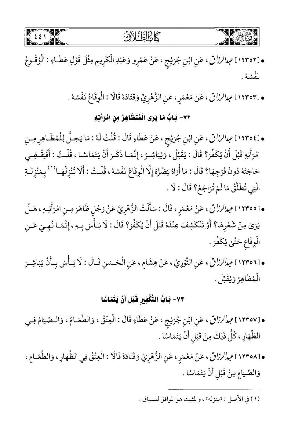 كتاب مصنف عبد الرزاق - ط التأصيل الثانية (اسم الجزء: 6)