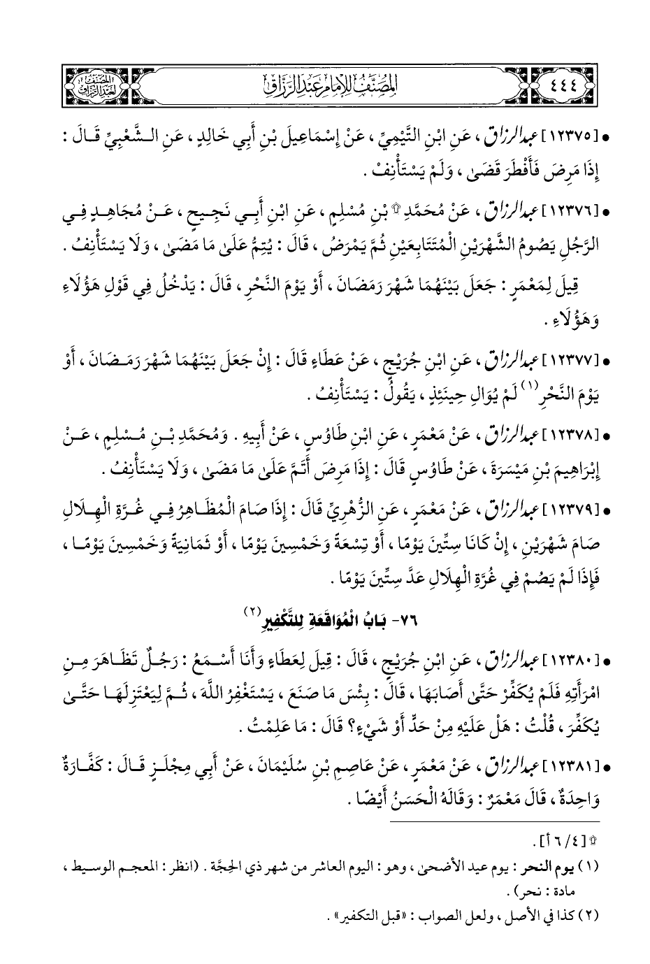 كتاب مصنف عبد الرزاق - ط التأصيل الثانية (اسم الجزء: 6)