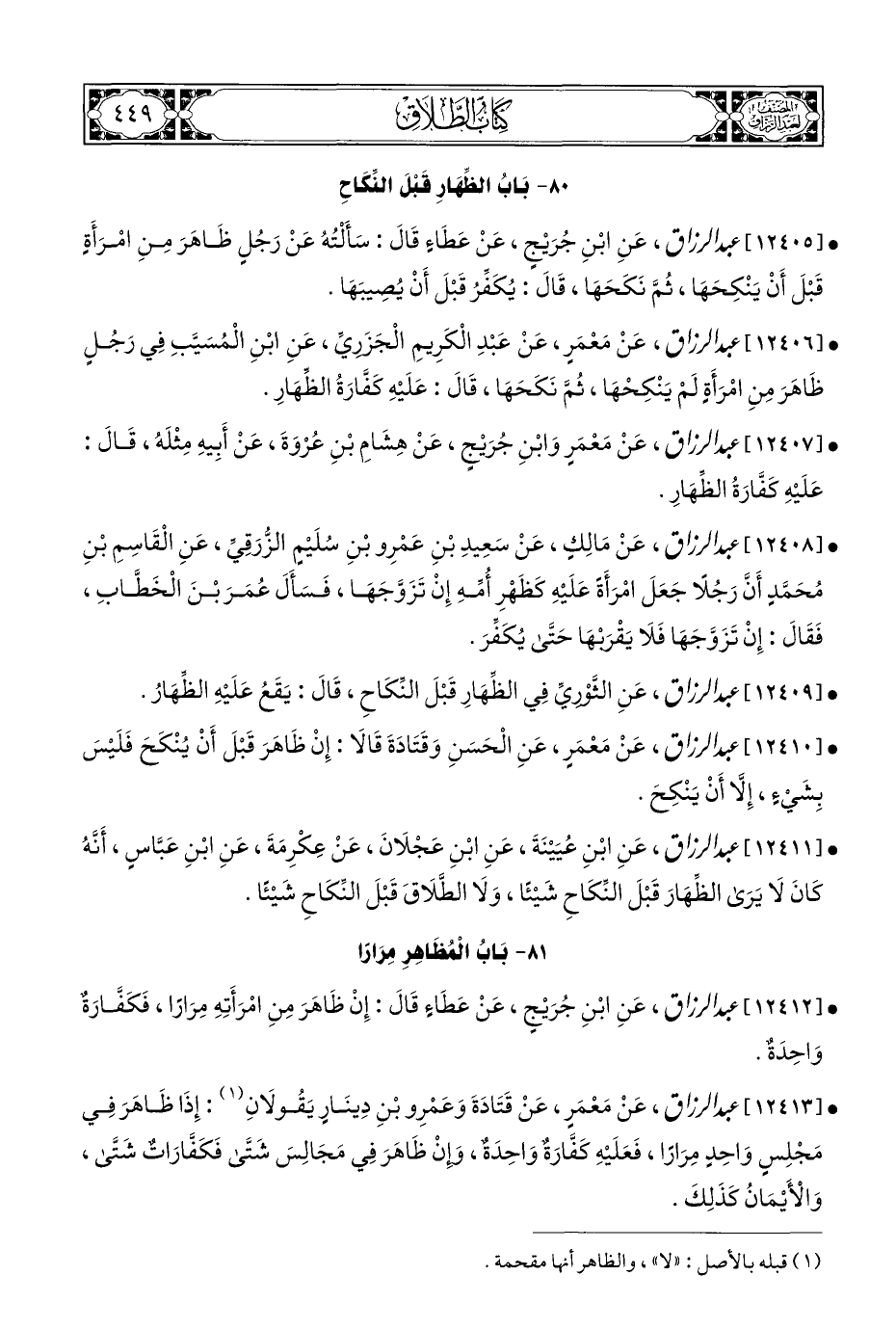 كتاب مصنف عبد الرزاق - ط التأصيل الثانية (اسم الجزء: 6)