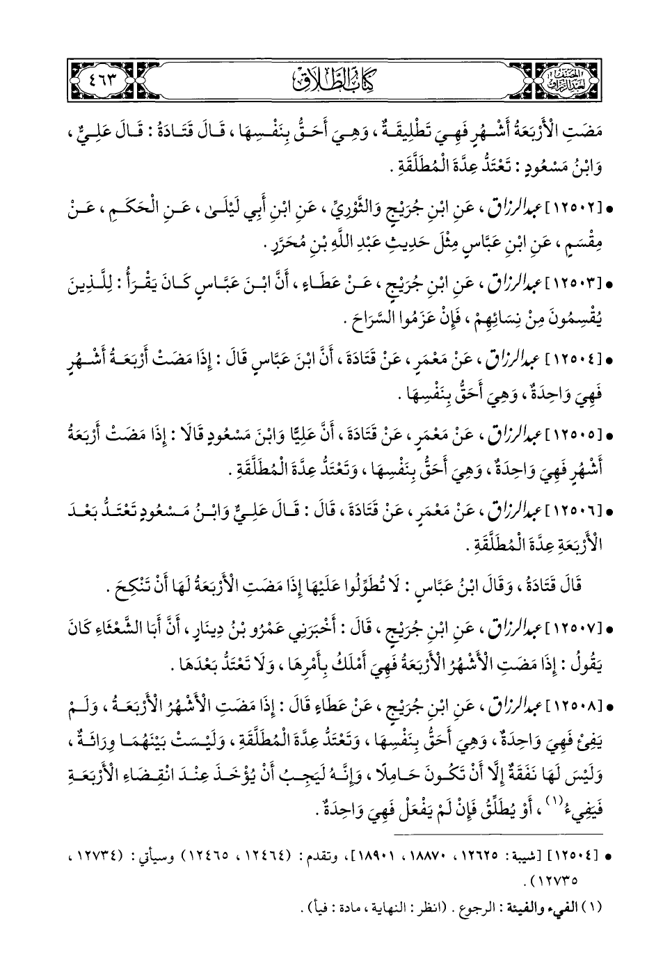 • [١٢٥٠٦] عبد الرزاق، عَنْ مَعْمَرٍ، عَنْ قَتَادَةَ، قَالَ: قَالَ عَلِيٌّ وَابْنُ مَسْعُودٍ تَعْتَدُّ بَعْدَ الْأَرْبَعَة عِدَّةَ الْمُطَلَّقَةِ.