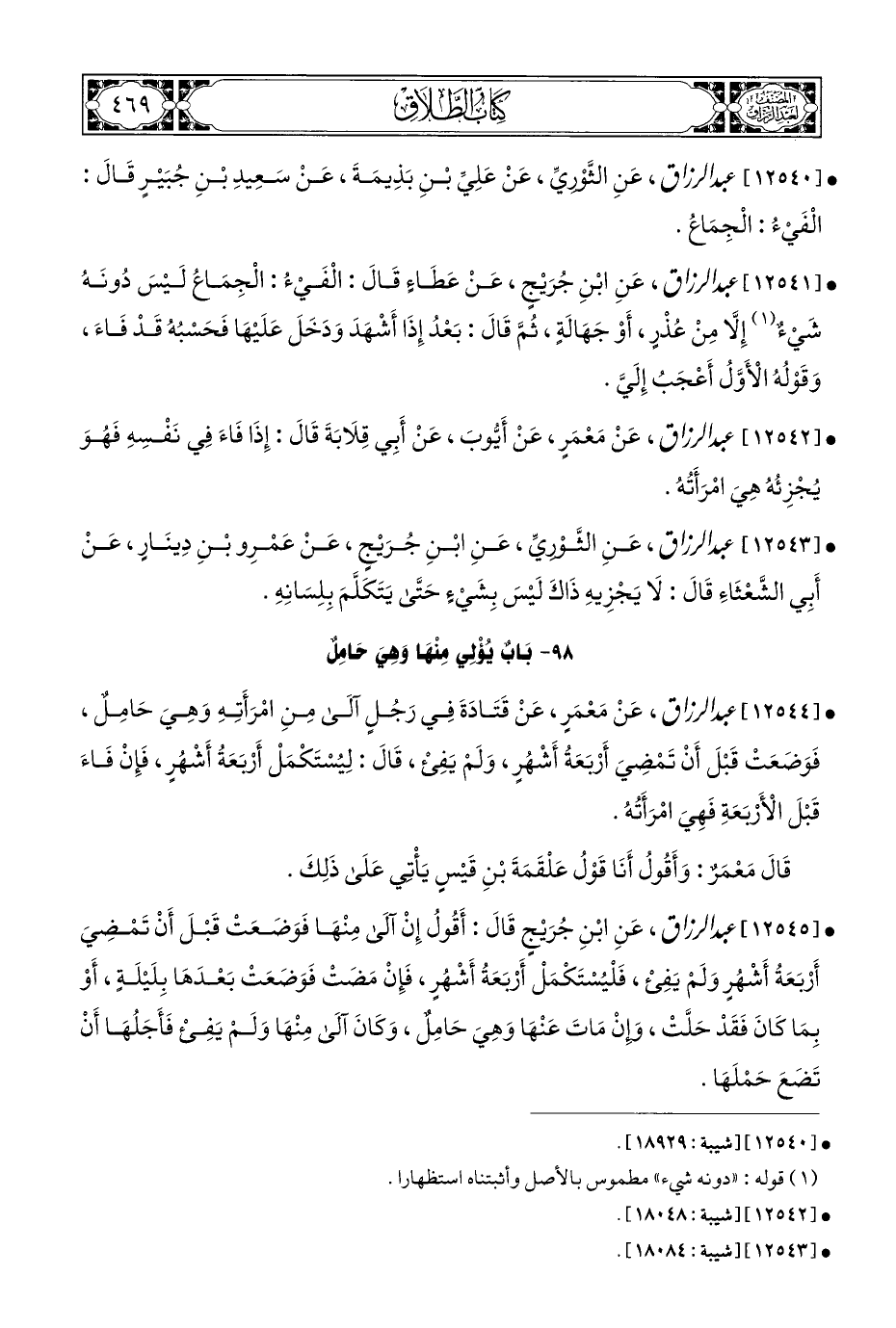 كتاب مصنف عبد الرزاق - ط التأصيل الثانية (اسم الجزء: 6)
