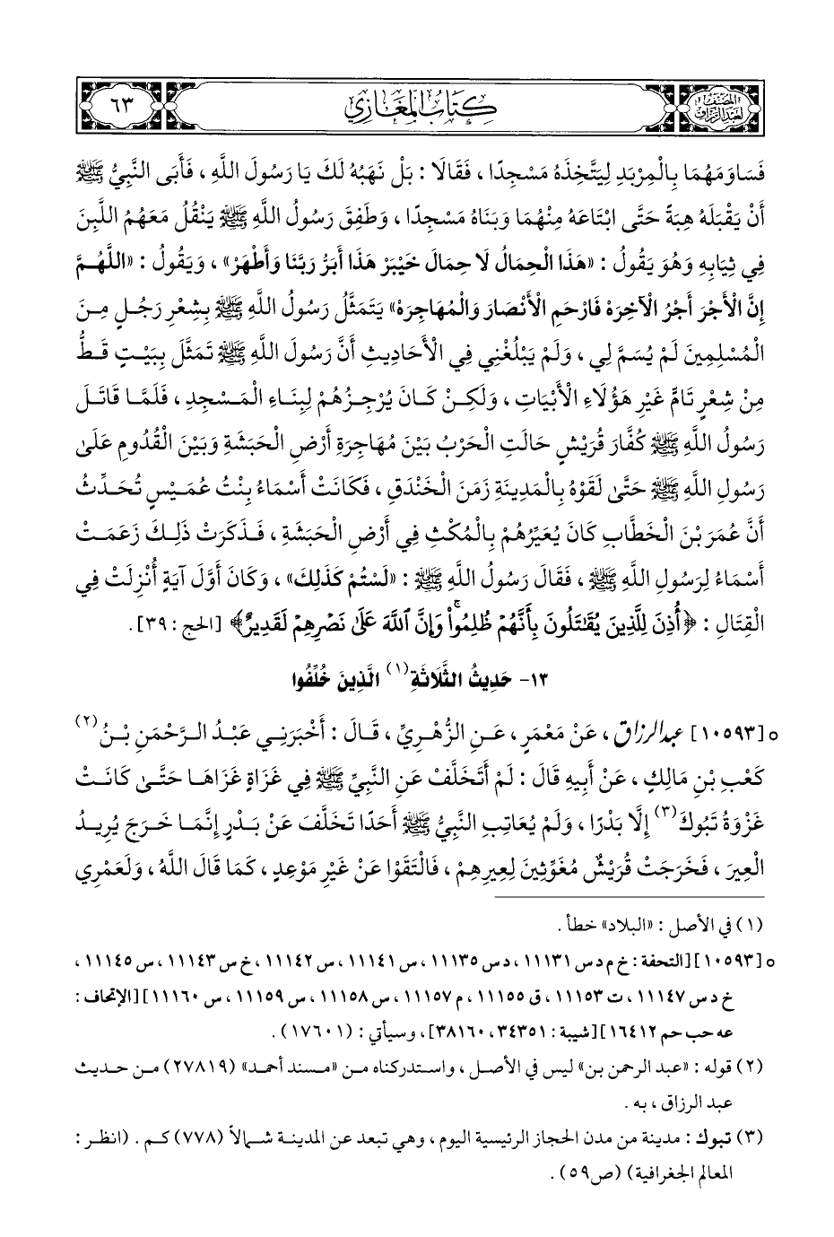 ١٣ - حَدِيثُ الثَّلَاثَةِ (¬١) الَّذِينَ خُلِّفُوا