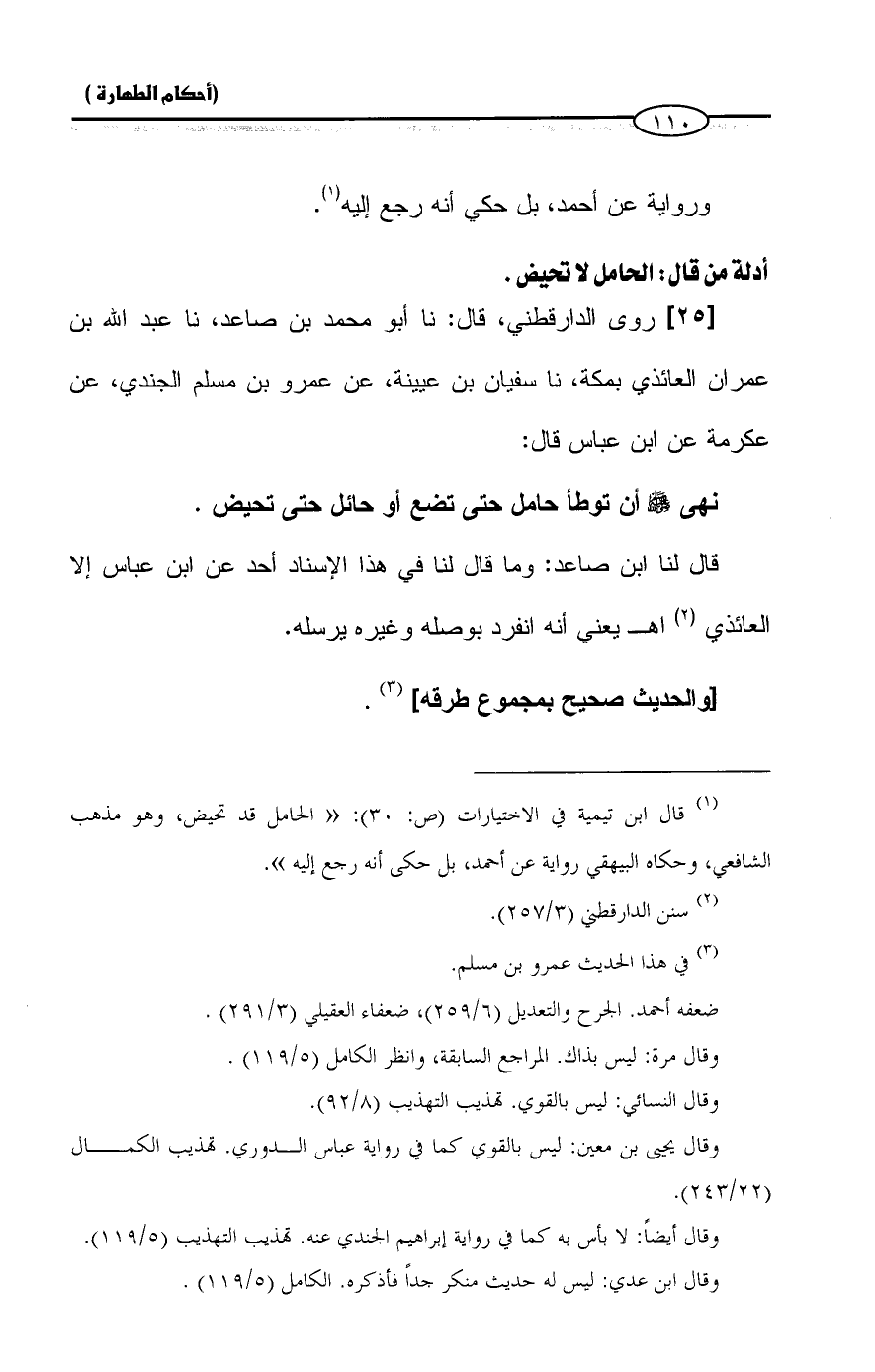 (¬١) قال ابن تيمية في الاختيارات (ص: ٣٠): "الحامل قد تحيض، وهو مذهب الشافعي، وحكاه البيهقي رواية عن أحمد، بل حكى أنه رجع إليه".