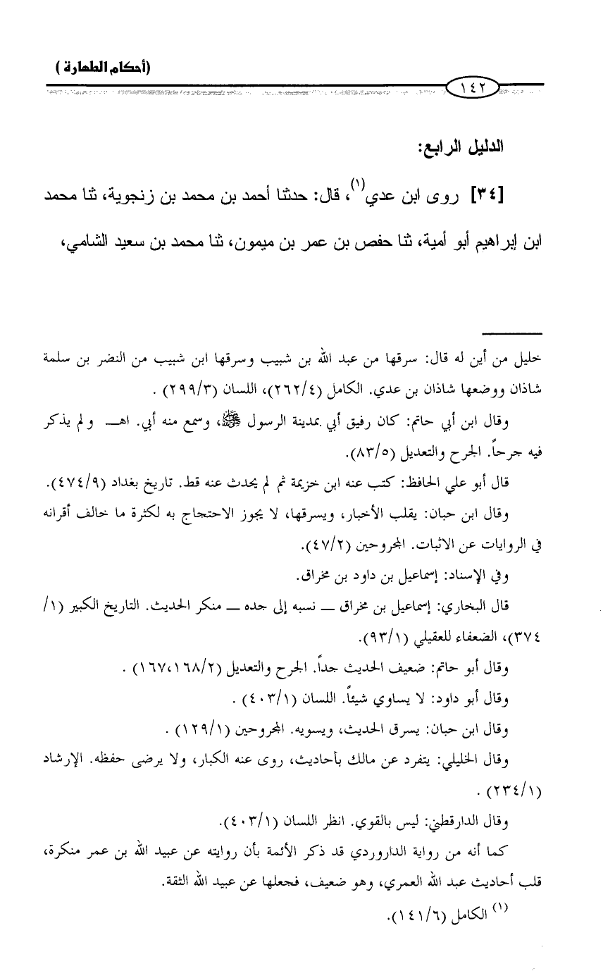 [٣٤] روى ابن عدي (¬١)، قال: حدثنا أحمد بن محمد بن زنجوية، ثنا محمد ابن إبراهيم أَبو أمية، ثنا حفص بن عمر بن ميمون، ثنا محمد بن سعيد الشامي،