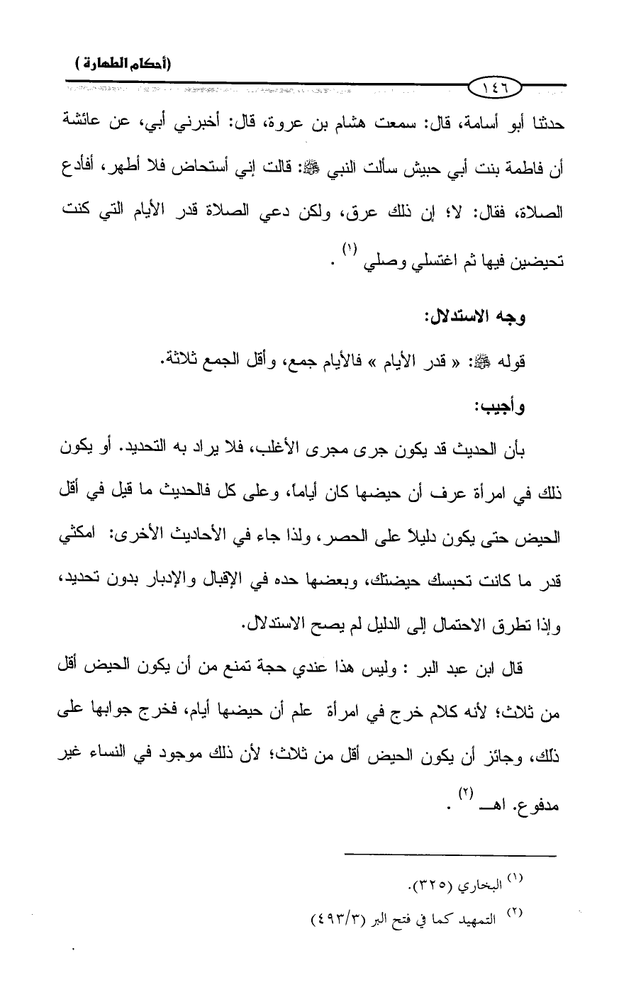قال ابن عبد البر: وليس هذا عندي حجة تمنع من أن يكون الحيض أقل من ثلاث؛ لأنه كلام خرج في امرأة علم أن حيضها أيام، فخرج جوابها على ذلك، وجائز أن يكون الحيض أقل من ثلاث؛ لأن ذلك موجود في النساء غير مدفوع. اهـ (¬٢).