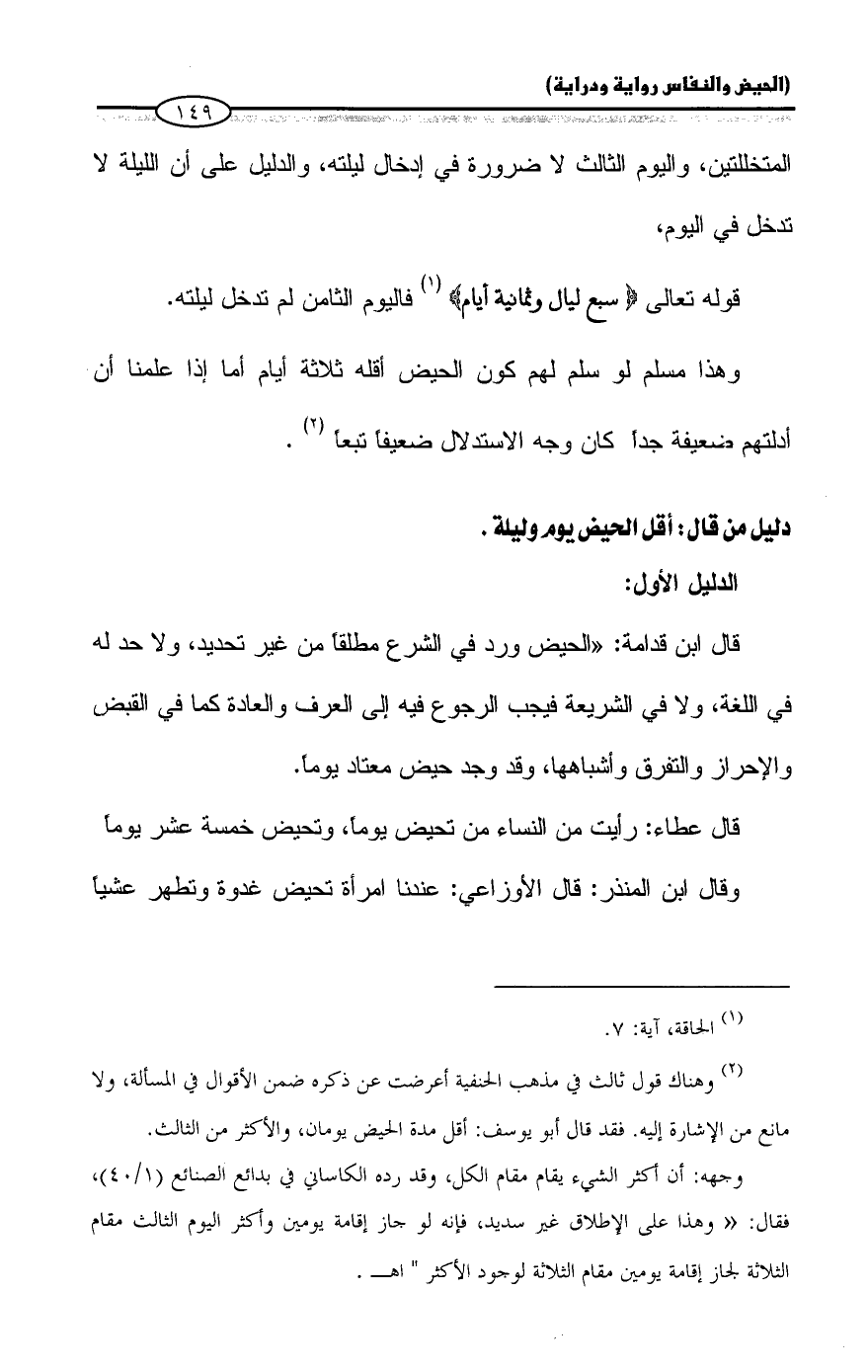 وهذا مسلم لو سلم لهم كون الحيض أقله ثلاثة أيام أما إذا علمنا أن أدلتهم ضعيفة جداً كان وجه الاستدلال ضعيفاً تبعاً (¬٢).