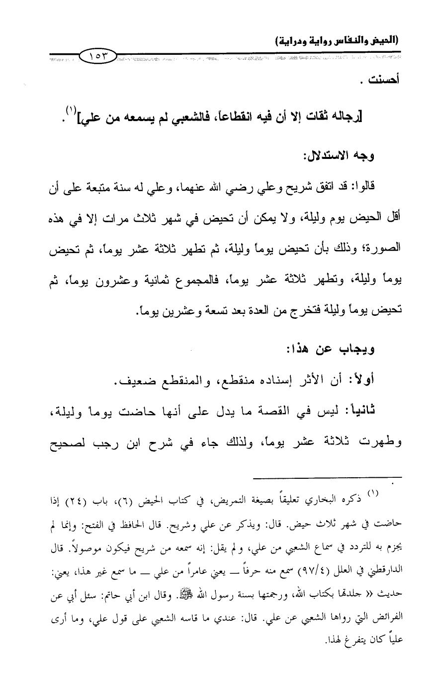 ثانياً: ليس في القصة ما يدل على أنها حاضت يوماً وليلة, وطهرت ثلاثة عشر يوماً، ولذلك جاء في شرح ابن رجب لصحيح