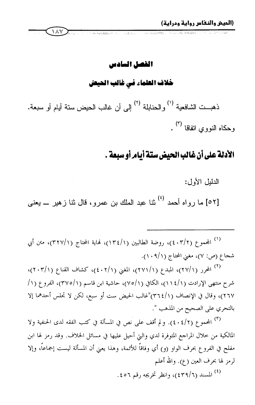 الفصل السادس: خلاف العلماء في غالب الحيض