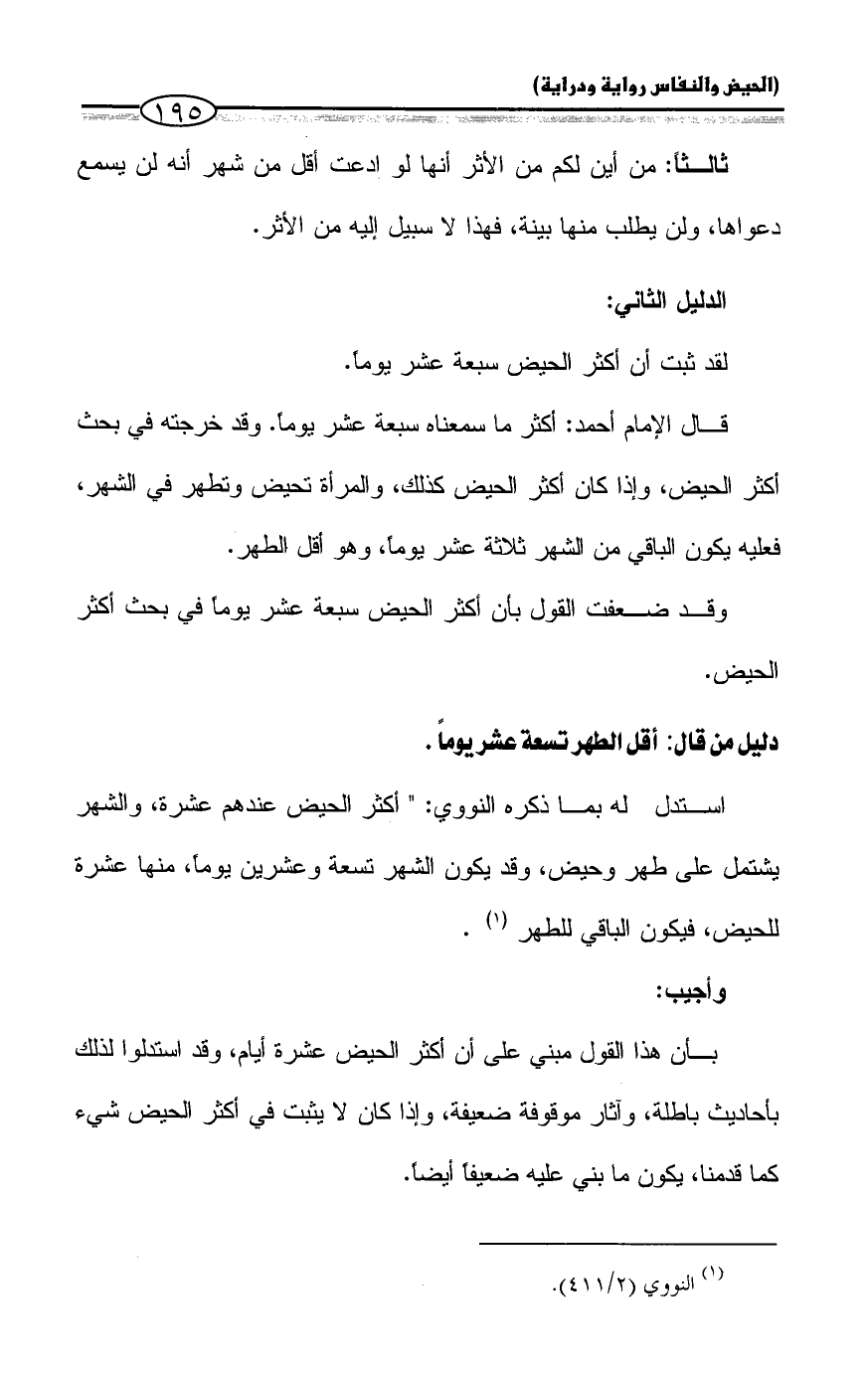 وقد ضعفت القول بأن أكثر الحيض سبعة عشر يوماً في بحث أكثر الحيض.