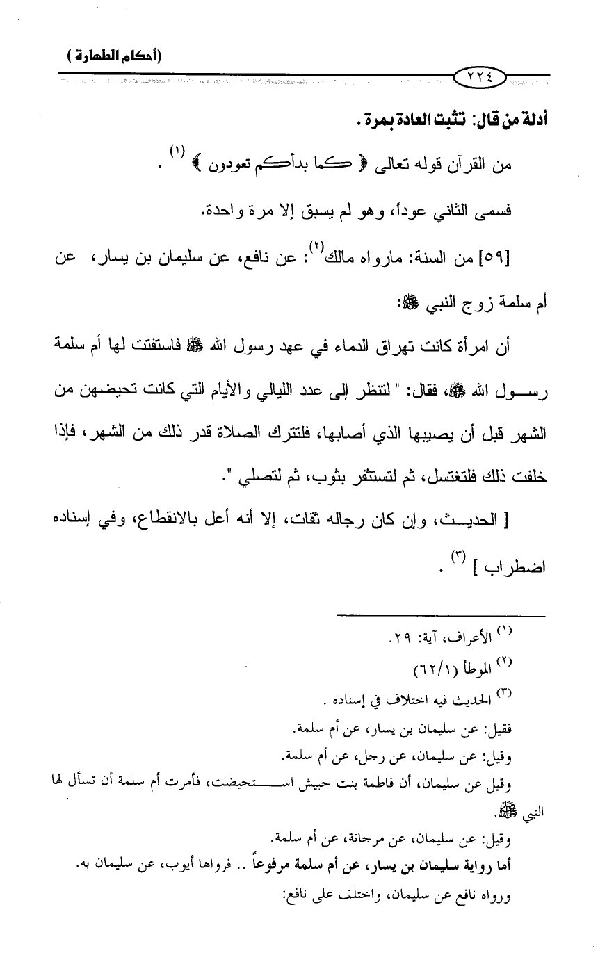 (¬٢) الموطأ (١/ ٦٢)