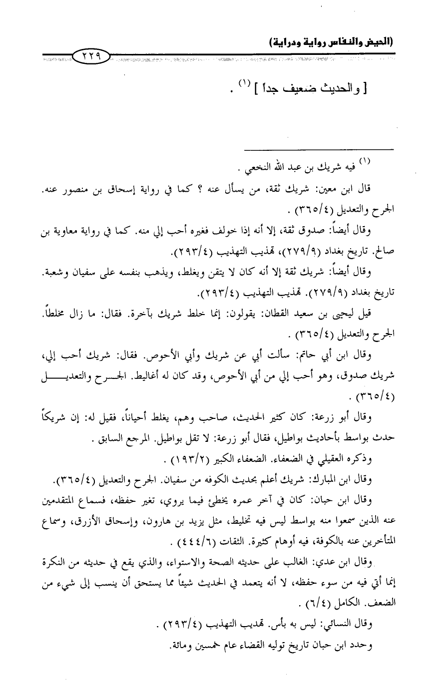وقال ابن المبارك: شريك أعلم بحديث الكوفه من سفيان. الجرح والتعديل (٤/ ٣٦٥).