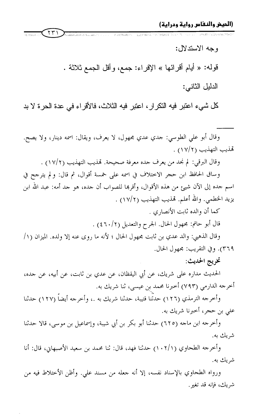 وقال أبو علي الطوسي: جدي عدي مجهول، لا يعرف، ويقال: اسمه دينار، ولا يصح. تهذيب التهذيب (٢/ ١٧).