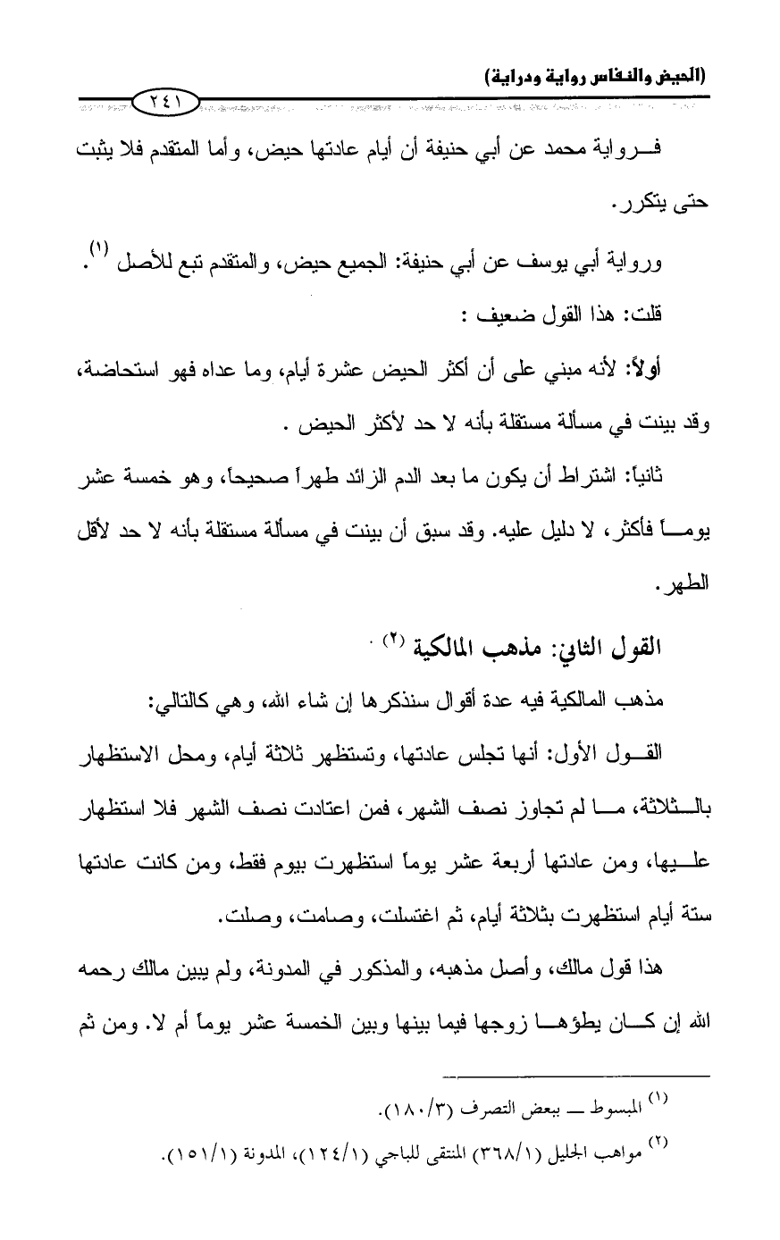 (¬٢) مواهب الجليل (١/ ٣٦٨) المنتقى للباجي (١/ ١٢٤)، المدونة (١/ ١٥١).