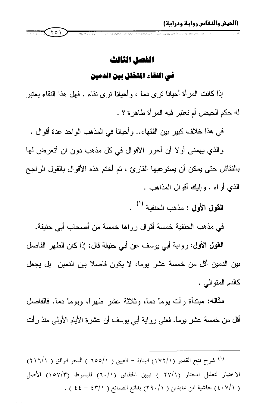 الفصل الثالث: في النقاء المتخلل بين الدمين