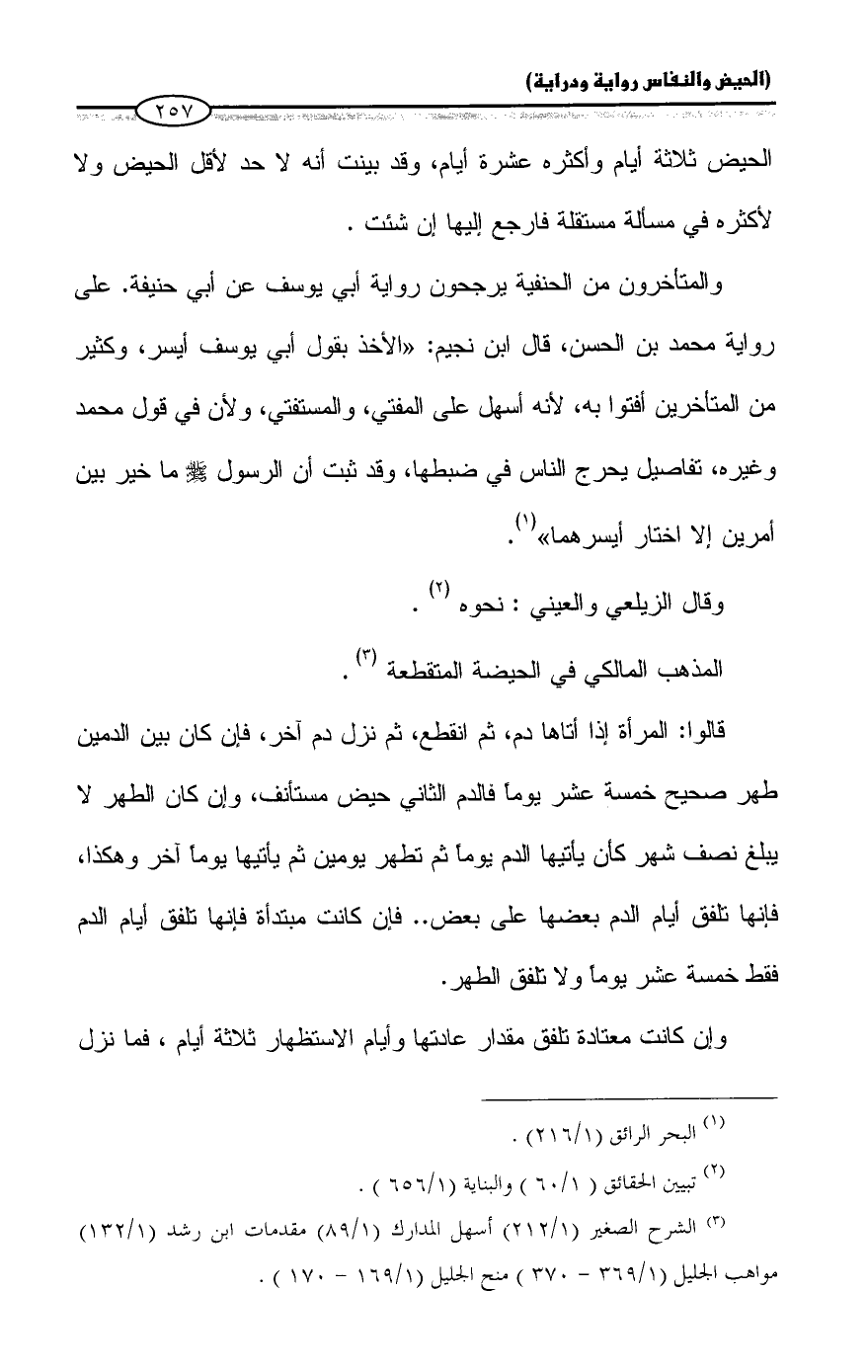 المذهب المالكي في الحيضة المتقطعة (¬٣).