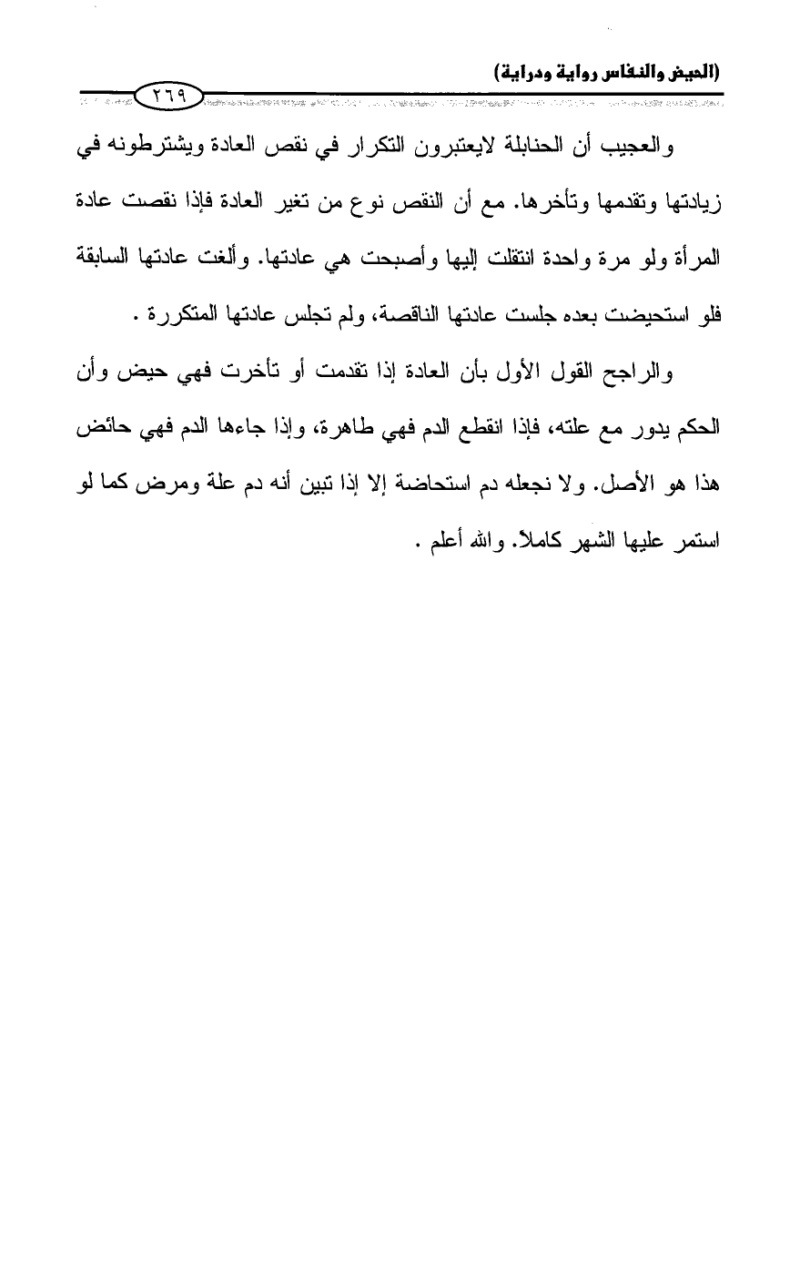 والعجيب أن الحنابلة لا يعتبرون التكرار فى نقص العادة ويشترطونه في زيادتها وتقدمها وتأخرها. مع أن النقص نوع من تغير العادة فإذا نقصت عادة المرأة ولو مرة واحدة انتقلت إليها وأصبحت هي عادتها. وألغت عادتها السابقة فلو استحيضت بعده جلست عادتها الناقصة، ولم تجلس عادتها المتكررة.