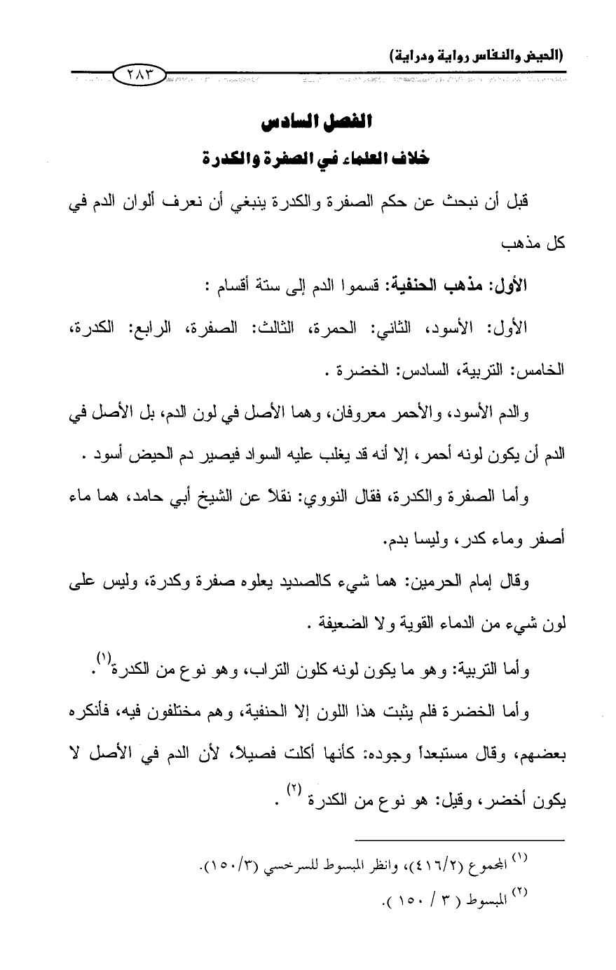 الفصل السادس: خلاف العلماء في الصفرة والكدرة