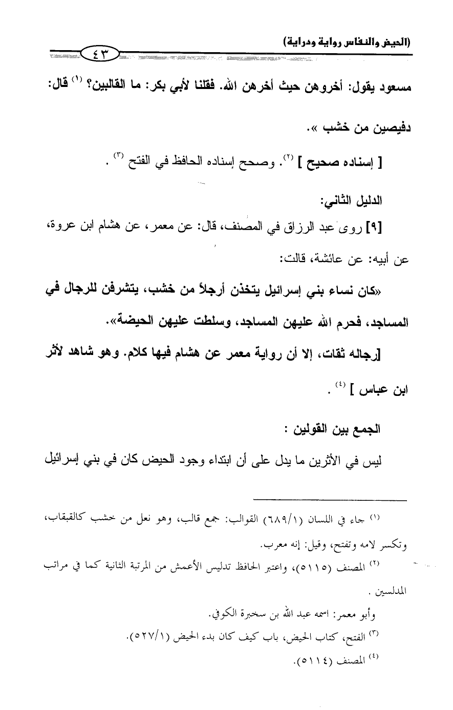 (¬٣) الفتح، كتاب الحيض، باب كيف كان بدء الحيض (١/ ٥٢٧).