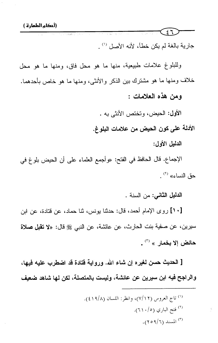 [١٠] روى الإمام أحمد، قال: حدثنا يونس، ثنا حماد، عن قتادة، عن ابن سيرين، عن صفية بنت الحارث، عن عائشة، عن النبي - صلى الله عليه وسلم - قال: "لا تقبل صلاة حائض إلا بخمار" (¬٣).
