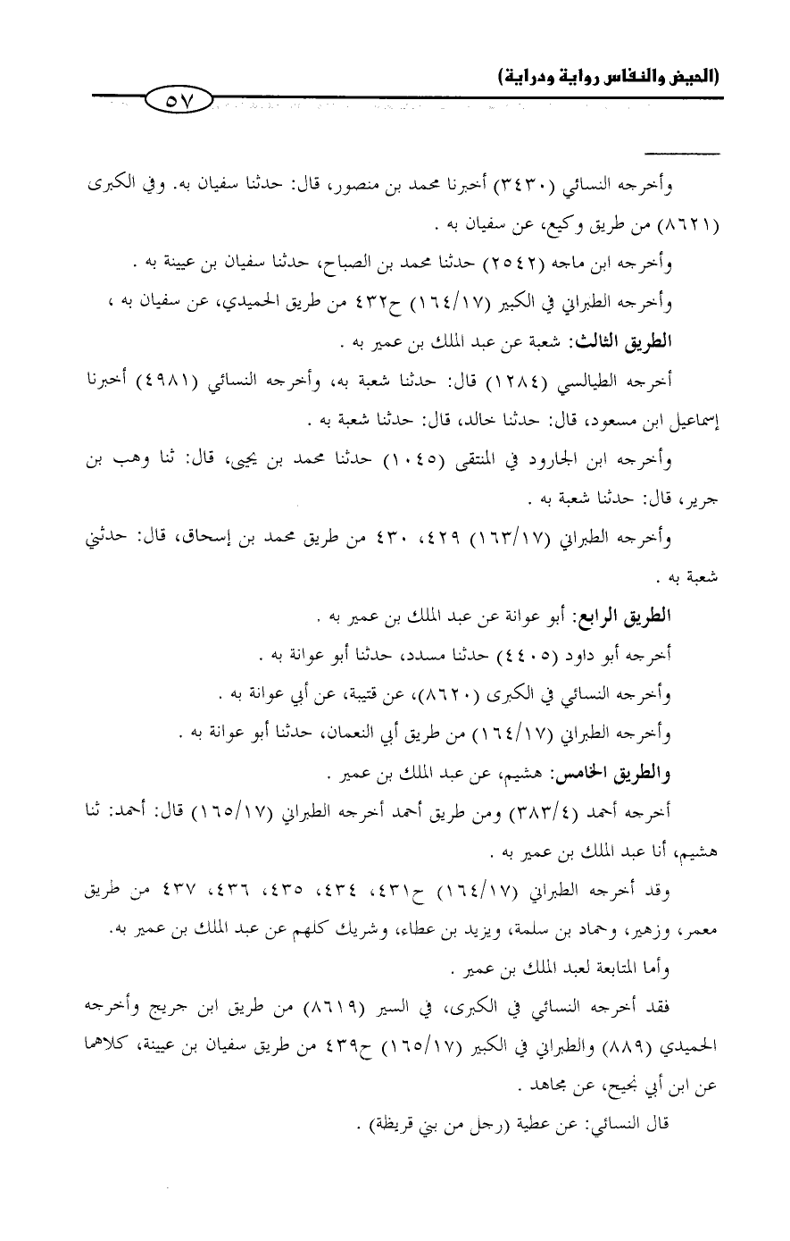 والطريق الخامس: هشيم، عن عبد الملك بن عمير.