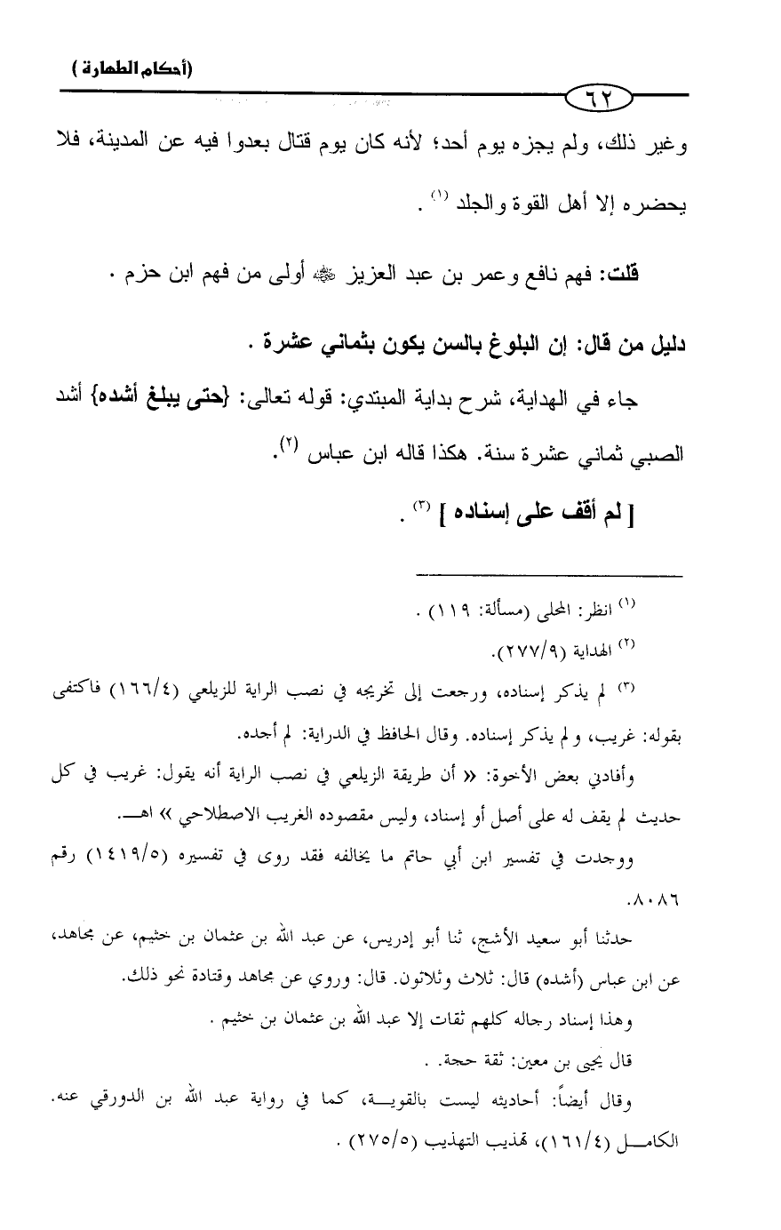 دليل من قال: إن البلوغ بالسن يكون بثماني عشرة.